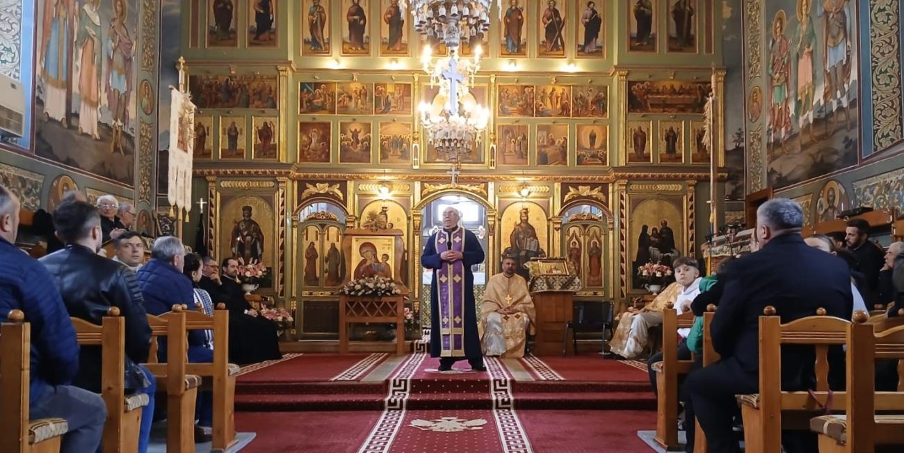 Adumbriți de purtarea de grijă și de rugăciunea Preacuratei Fecioare Maria, la data de 22 martie 1906, credincioșii comunității din Galda de Jos au rânduit să fie așezată piatra de temelie a noii biserici, locașul de cult urmând să fie târnosit în data de 6 decembrie a aceluiași an. Cu ocazia împlinirii a 120 de ani de la sfințirea pietrei de temelie a edificiului eclezial, duminică, 22 martie 2026, comunitatea ortodoxă a îmbrăcat haină de aleasă bucurie duhovnicească, Sfânta Liturghie fiind oficiată într-un numeros sobor de preoți.