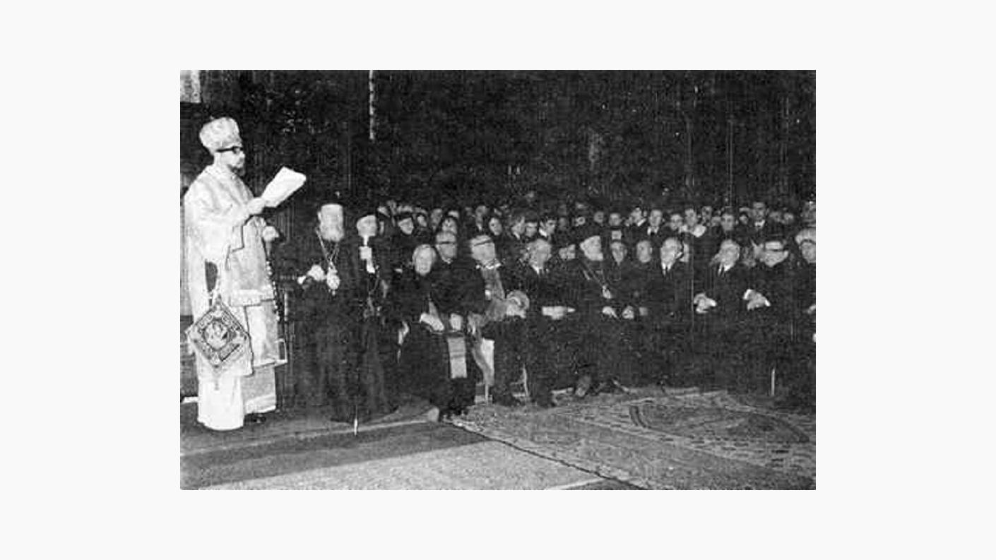 În cuvântul rostit la finalul Sfintei Liturghii, Mitropolitul Nicolae Mladin a evidențiat importanța și solemnitatea momentului, subliniind totodată însemnătatea deosebită a misiunii Episcopul Emilian. În continuare, s-a dat citire Gramatei Mitropolitane, prin care se făcea cunoscută în mod oficial înființarea Eparhiei. Apoi, ca semn al împuternicirii canonice de păstorire a clericilor și credincioșilor din județele Alba, Mureș și Harghita, i-a fost înmânată noului Episcop al Alba Iuliei cârja arhierească. De asemenea, au mai luat cuvântul Mitropolitul Iustin Moisescu, prof. Gheorghe Nenciu, dar și alți reprezentanți ai celorlalte culte, care au evidențiat considerentele istorice ale reînființării scaunului vlădicesc de la Alba Iulia.