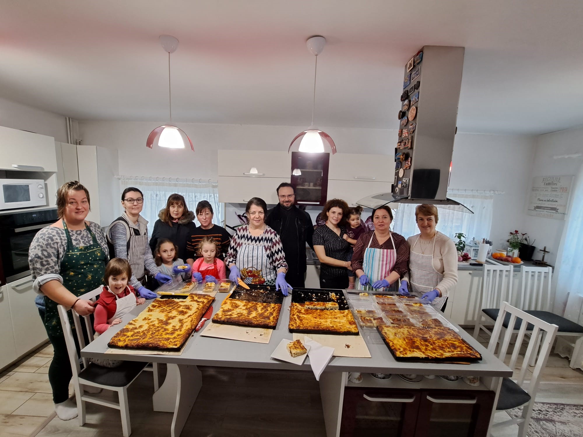 În acest sens, femeile din Comitetul parohial al Parohiei Ortodoxe Vinerea II, coordonate de prof. Mihaela Szilgyi-Tomoiu, s-au mobilizat și au pregătit plăcinte cu brânză, spre a fi împărțite celor peste 65 de persoane vârstnice, singure și vulnerabile identificate în parohie. La pregătirea delicioaselor preparate culinare au participat, pe lângă credincioasele din Comitetul parohial, și copii și bunicuțe care și-au arătat priceperea și îndemânarea, îndrumând toată munca de preparare, de la frământarea aluatului până la coptul și tăiatul plăcintelor. Copiii din parohie au asistat cu deosebit interes la întregul procedeu de preparare, dând o mână de ajutor la aranjarea plăcintelor în caserole și la distribuirea lor persoanelor identificate.