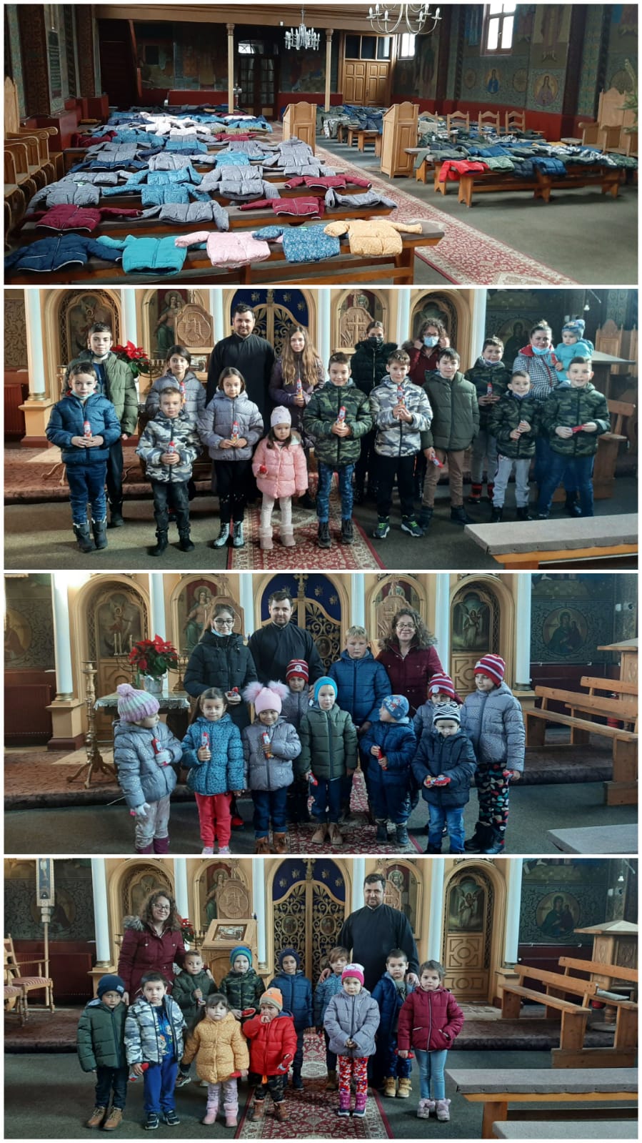 Pentru al doilea an consecutiv, prin vrerea lui Dumnezeu și cu ajutorul unor oameni extraordinari, copilașii de la grădiniță și elevii claselor primare și gimnaziale din localitatea Jabenița au primit geci de iarnă. Noi, cu inima plină de recunoștință și cu multă dragoste, le mulțumim fetelor cu suflet de aur din Asociația „Karuna”, care s-au ostenit pentru copiii parohiei noastre, tuturor acelor mămici din minunatul grup de prieteni virtuali denumit „Cuibul Berzelor” și altor prieteni. Astfel de oameni merită amintiți la rugăciunea de seară, pentru că sunt exemple vii de iubire de aproapele și cea mai convingătoare manieră de a arăta că umanitatea nu s-a pierdut!