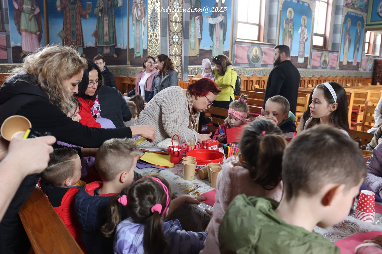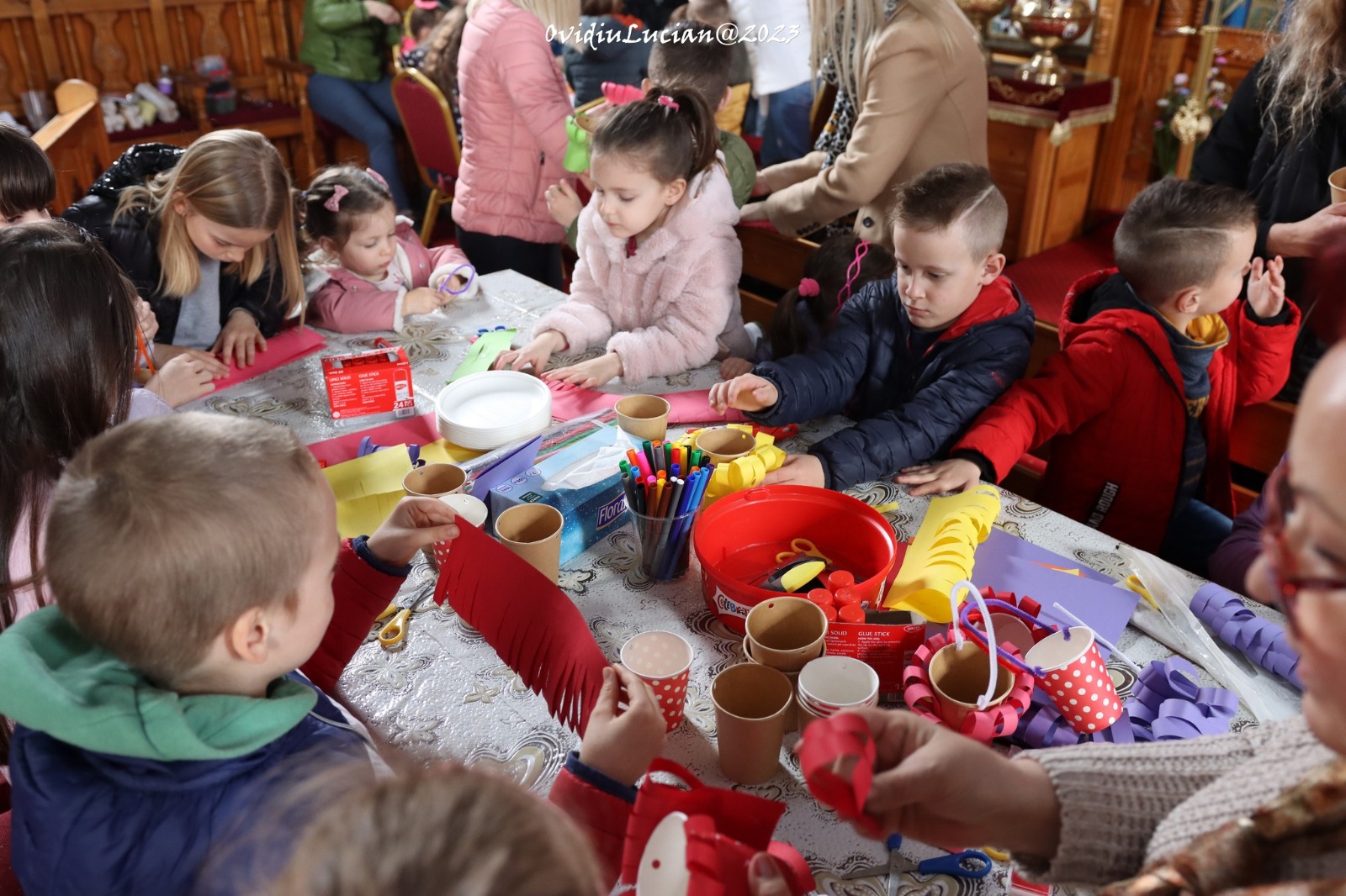 Pe această cale, mulțumim părinților și bunicilor prezenți, binefăcătorilor care susțin din punct de vedere material evenimentele cultural-educaționale desfășurate în biserica parohială, dar, în mod special, aducem mulțumiri cadrelor didactice pentru sprijinul acordat pe întreaga durată a atelierului de creație.