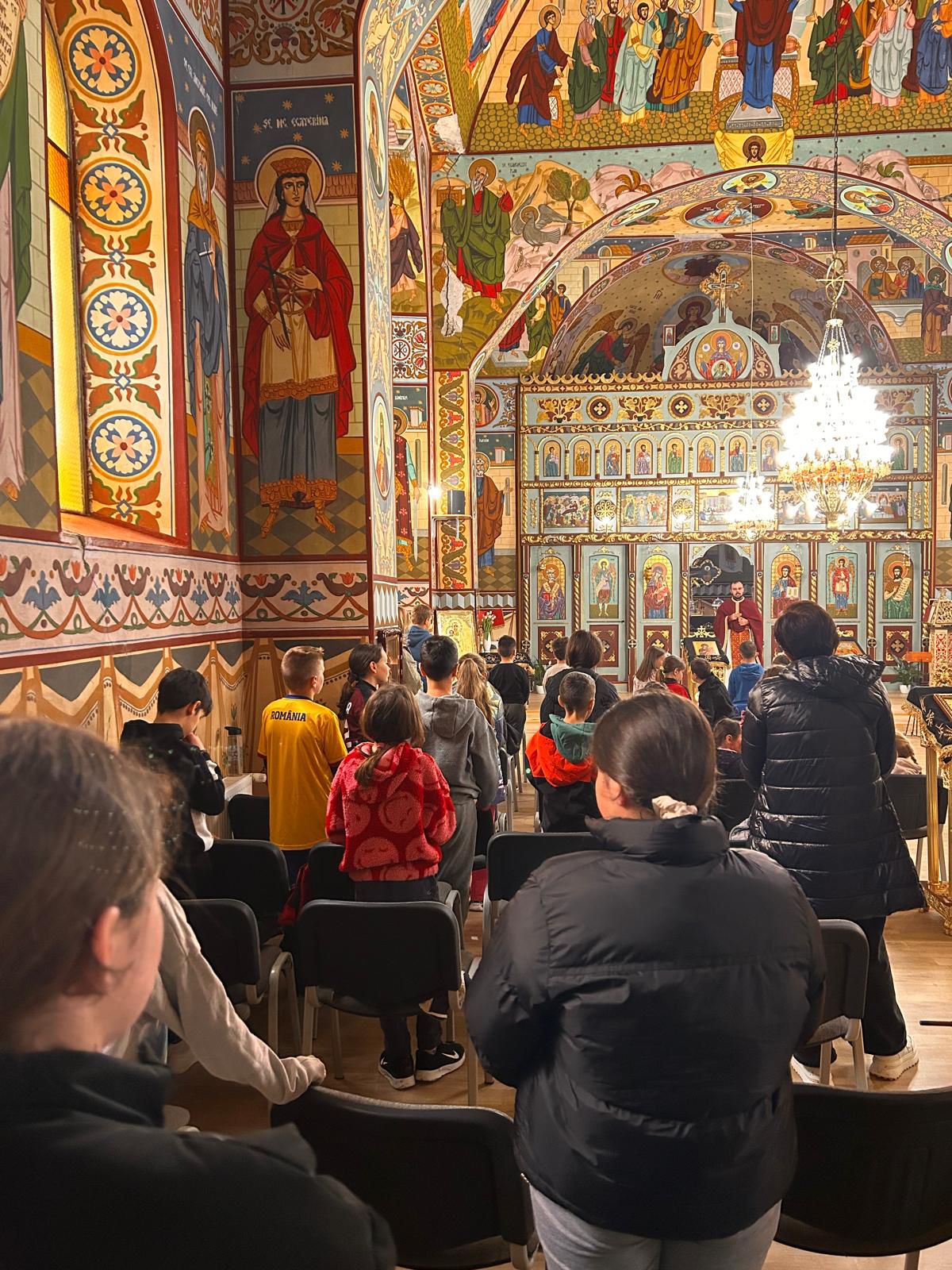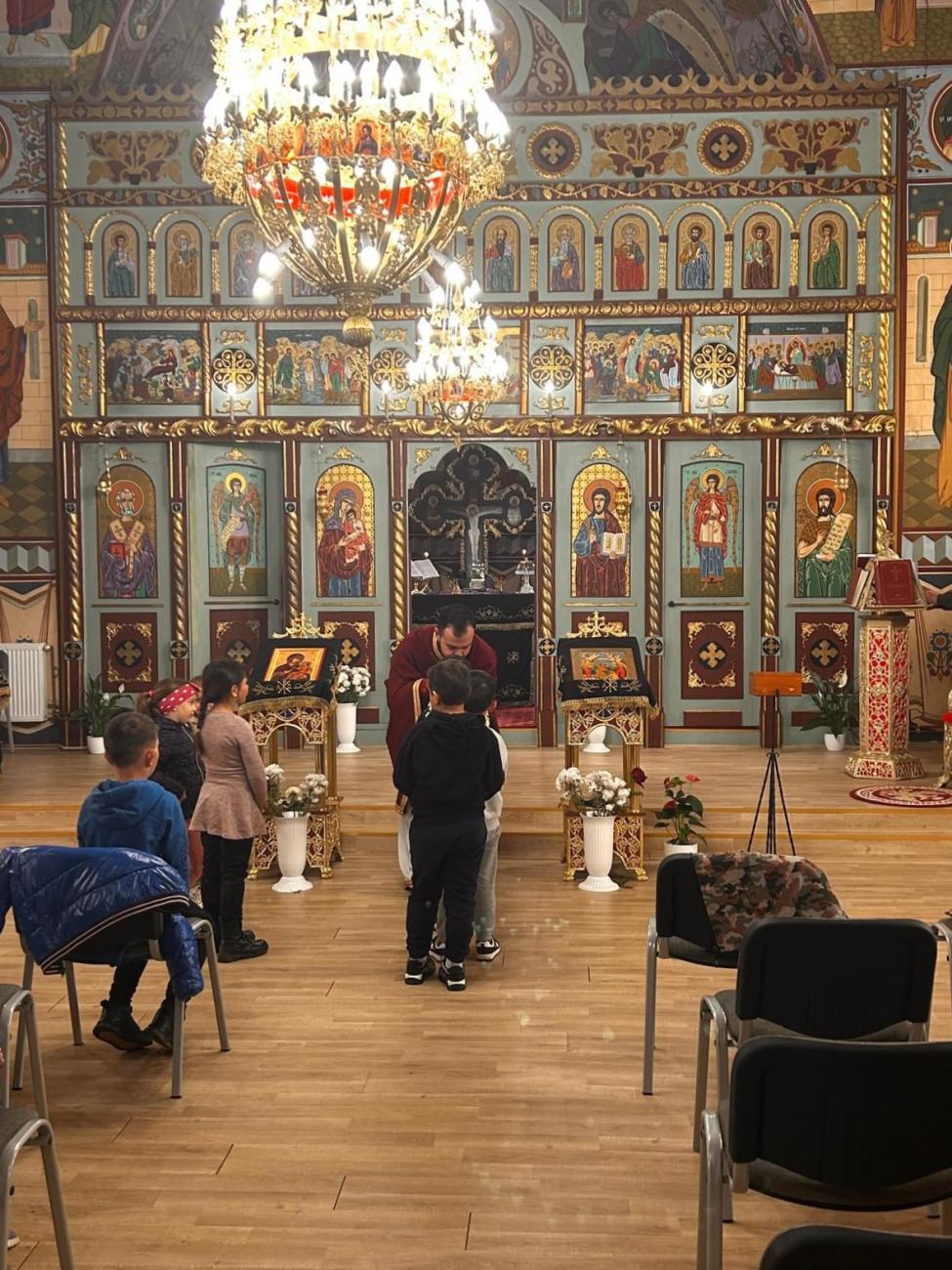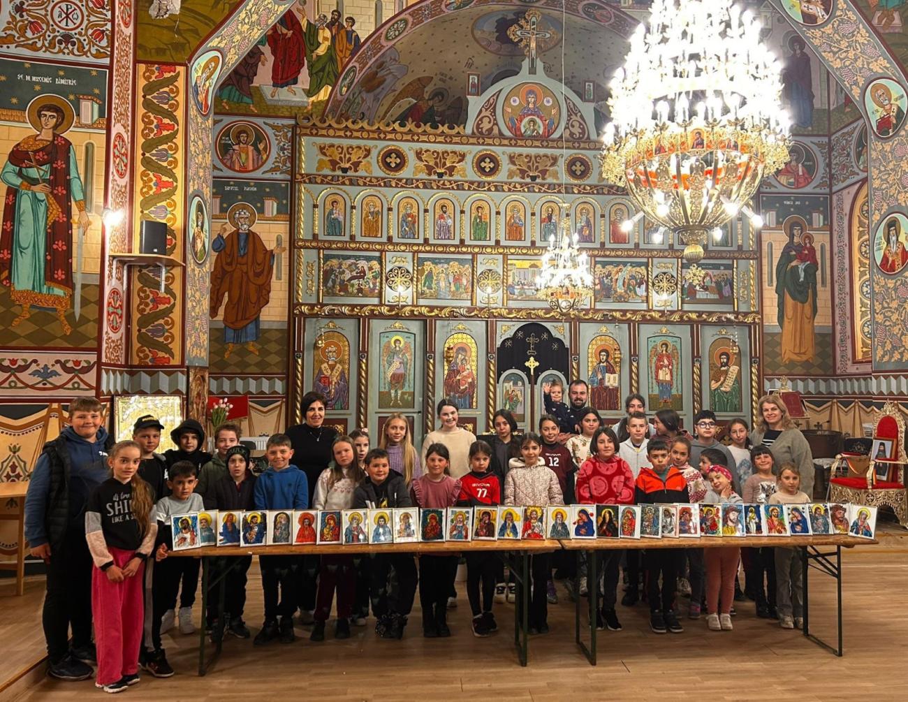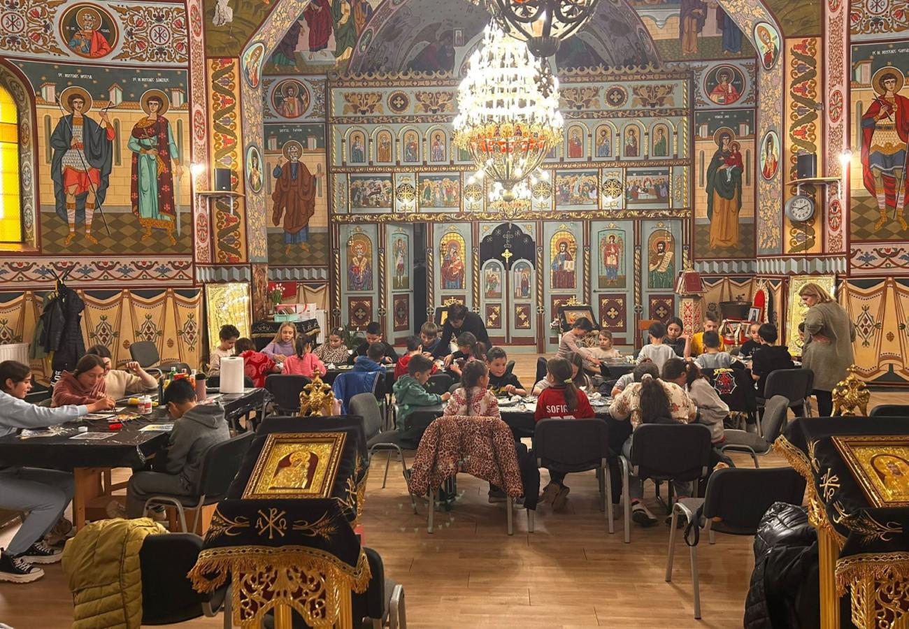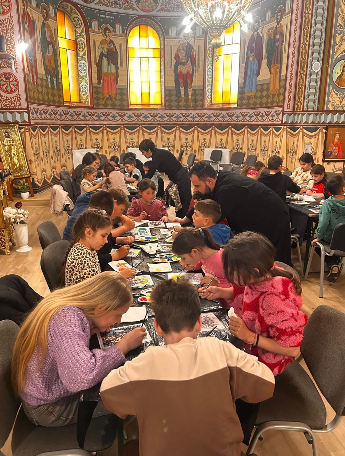 După slujbă, copiii au participat la un atelier de pictură pe sticlă, unde au lucrat cu bucurie și interes. Prin culori și forme, fiecare a încercat să exprime ceea ce a simțit, arătând deschiderea și curăția sufletului copilăresc. Așa cum ne învață Sfântul Ioan Gură de Aur, sufletul copilului este curat și primitor, iar ceea ce se sădește în el la început rodește mai târziu. De aceea, astfel de activități sunt importante pentru apropierea copiilor de Biserică și pentru formarea lor sufletească.
