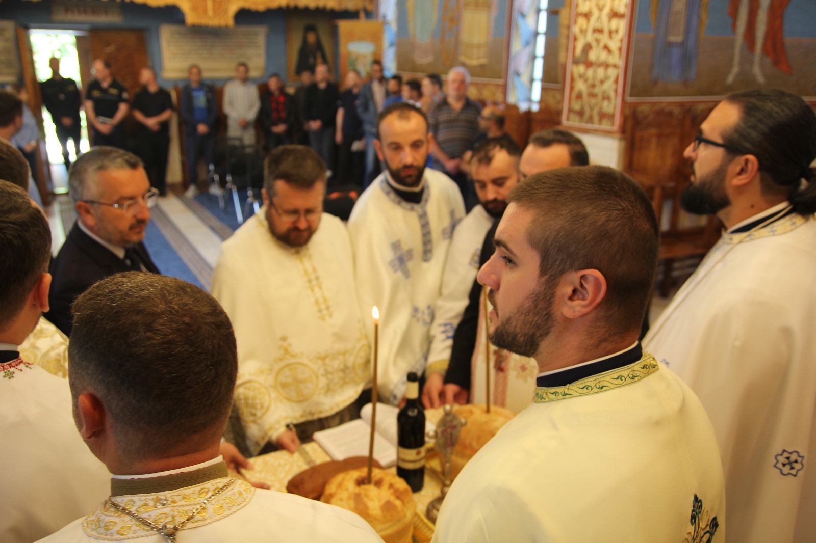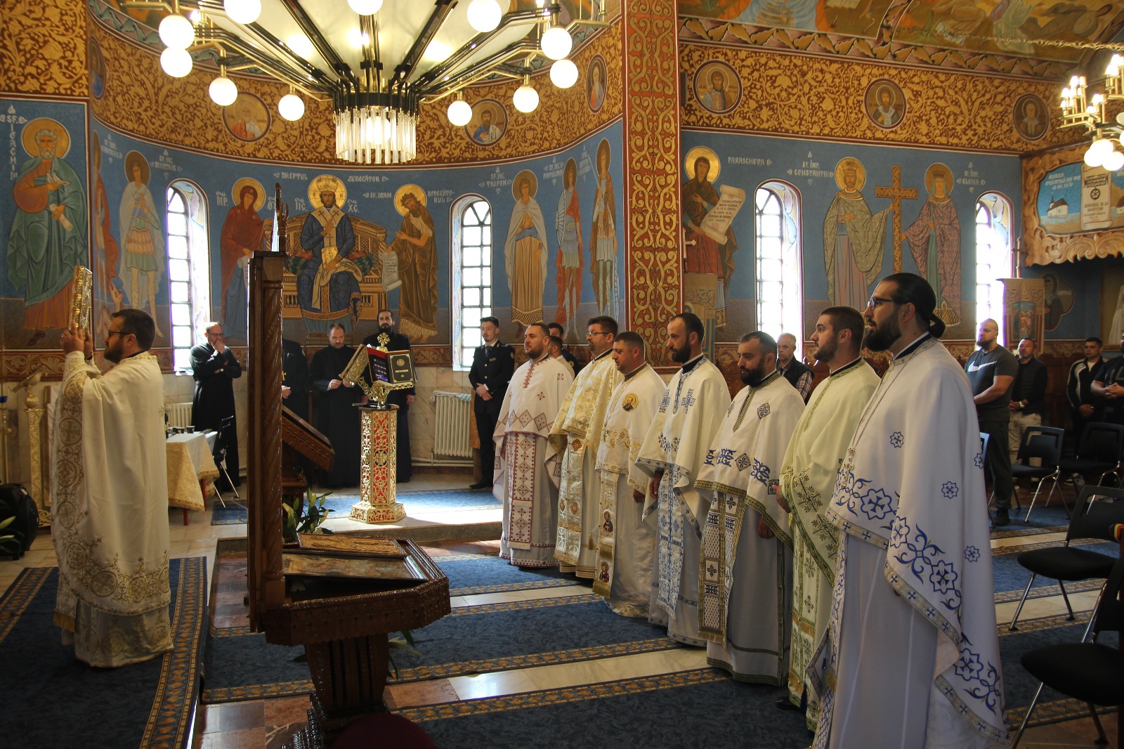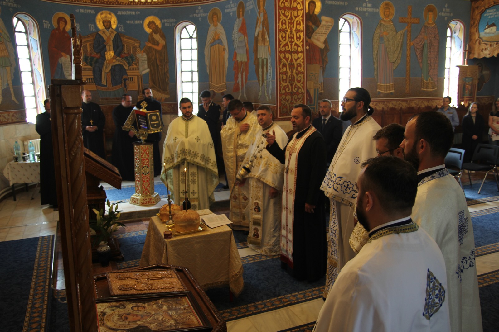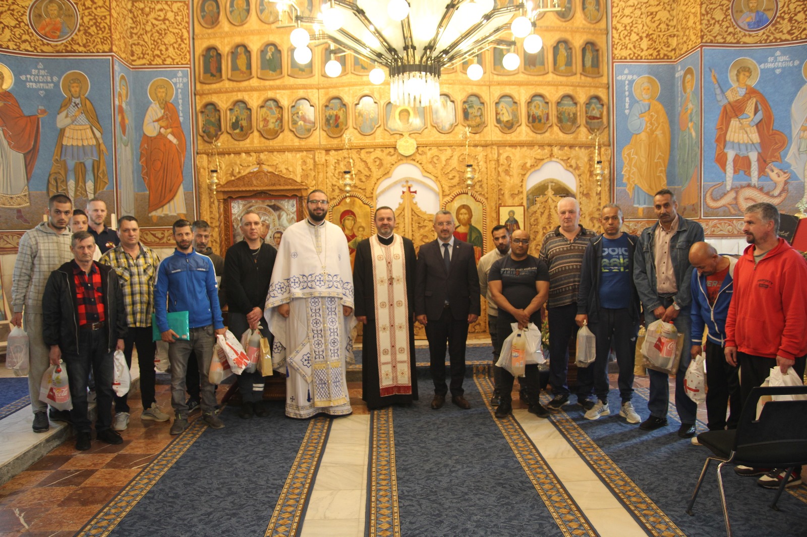 În continuare, preoții de penitenciar, cărora li s-au alăturat părintele Ioan Bogdan, protopop al Aiudului, și preoții militari Ovidiu Truță și Dorin Ursu, au oficiat slujba parastasului pentru fostele cadre ale unității, după care au săvârșit slujba de sfințire a icoanei Maicii Domnului „Rugul Aprins”, reprezentativă pentru membrii actanți ai grupului de rezistență duhovnicească de la Mănăstirea Antim din Capitală, și icoanele Sfinților Dismas tâlharul și Moise Etiopianul, ocrotitori ai celor întemnițați. La final slujbelor, părintele protopop Ioan Bogdan și domnul Nicolae Albu, prefectul județului Alba, au împărțit daruri deținuților bolnavi aflați în custodia Penitenciarului Aiud, în contextul Anului omagial al pastorației și îngrijirii bolnavilor.
