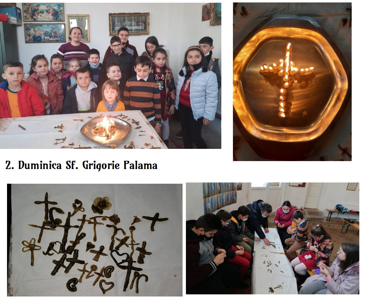 2. În a doua Duminică din Post, a Sfântului Grigorie Palama și a Luminii Taborice, copiii au învățat despre semnificația liturgică a lumânărilor în Biserica Ortodoxă. Li s-a explicat procesul de fabricație, punându-li-se în vedere și multele beneficii ale cerii de albine, precum și necesitatea protejării mediului prin reciclare. Totodată, copiii au observat că ceara de albine poate fi o alternativă naturală și ecologică la plastelină sau orice alt material modelabil. Pentru a evidenția aceasta, copiii au modelat din resturi de lumânare mici obiecte care mai apoi au fost expuse.