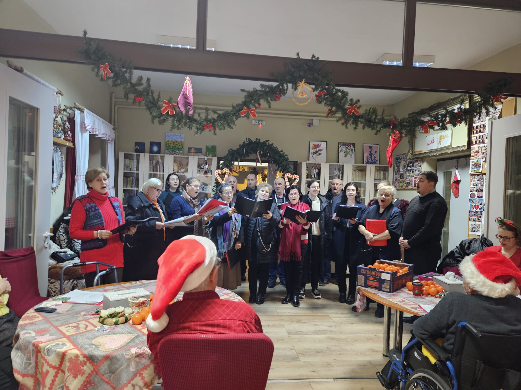 Șirul de evenimente a fost încheiat prin vizita Corului Catedralei mari din Târgu Mureș, însoțiți de către părintele Constantin Toma, care au vestit Nașterea Domnului și au adus bucuria pe chipurile vârstnicilor de la Căminul pentru bătrâni din Târgu Mureș. În final, tuturor persoanelor vârstnice beneficiare ale centrului le-au fost aduse cuvinte de îmbărbătare, fiindu-le oferite în dar fructe, precum și produse alimentare. Mulțumim și aducem felicitări tuturor celor implicați în organizarea acestui șir de evenimente cultural-tradiționale și social-filantropice, care ne-au adus mai aproape de esența sărbătorii și de frumusețea tradițiilor noastre.