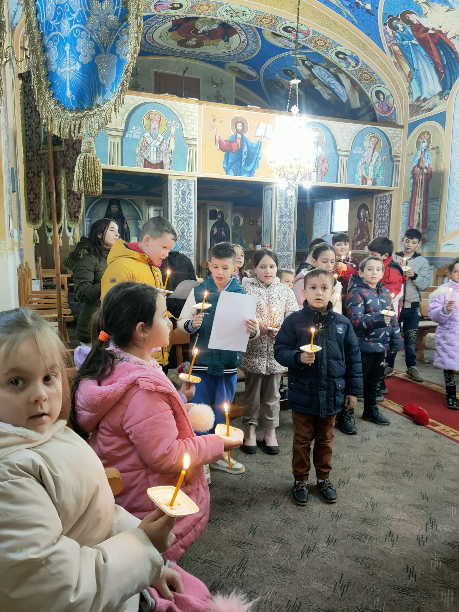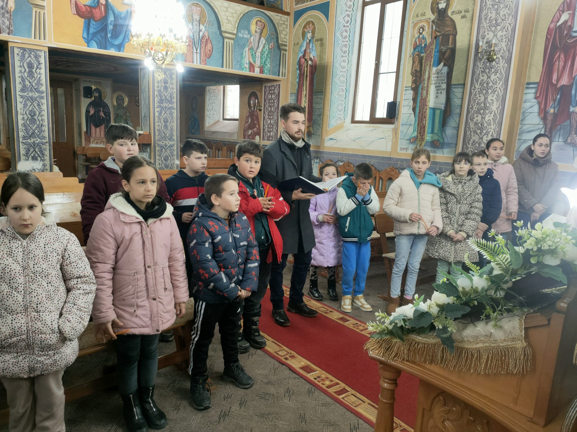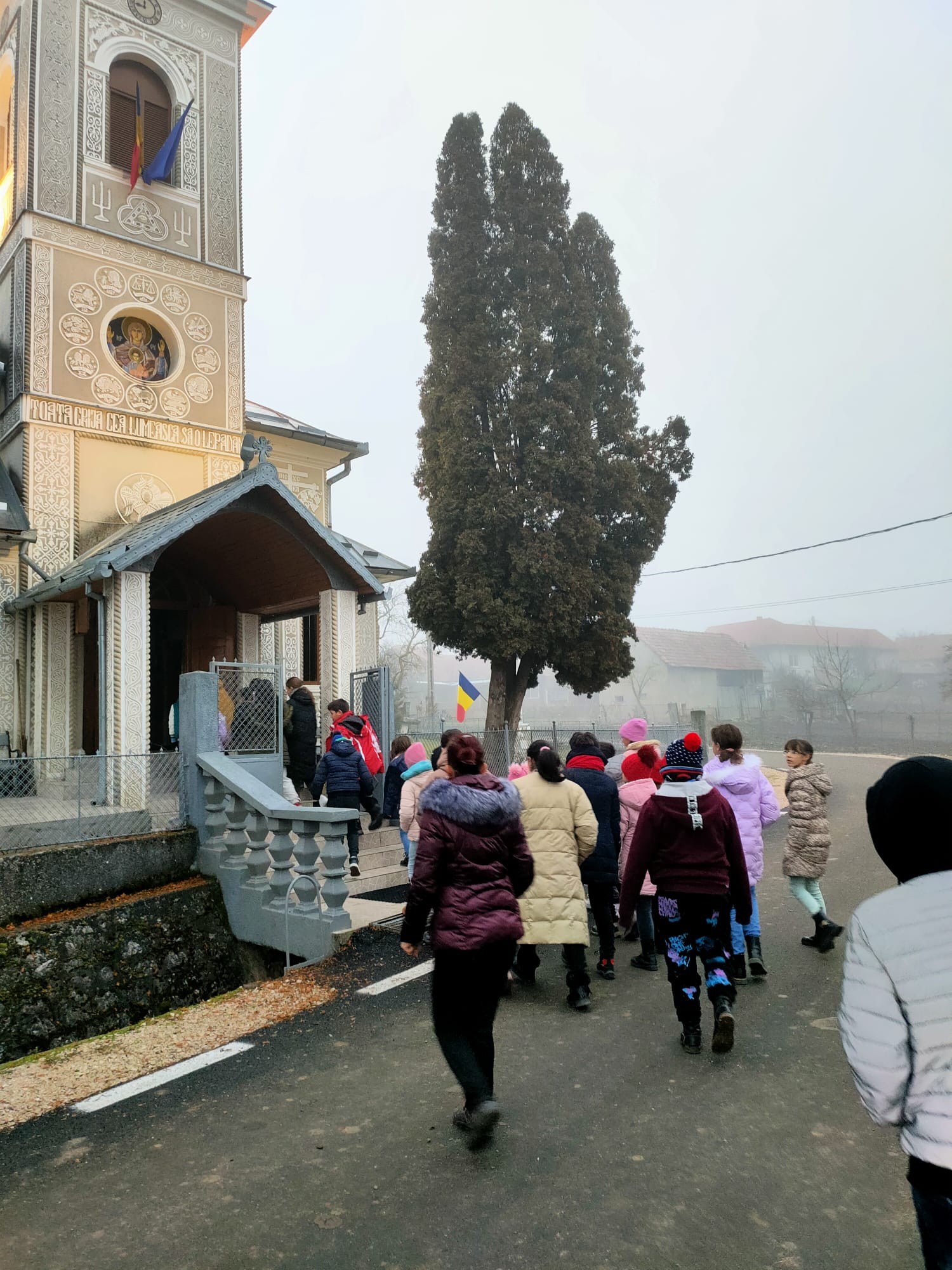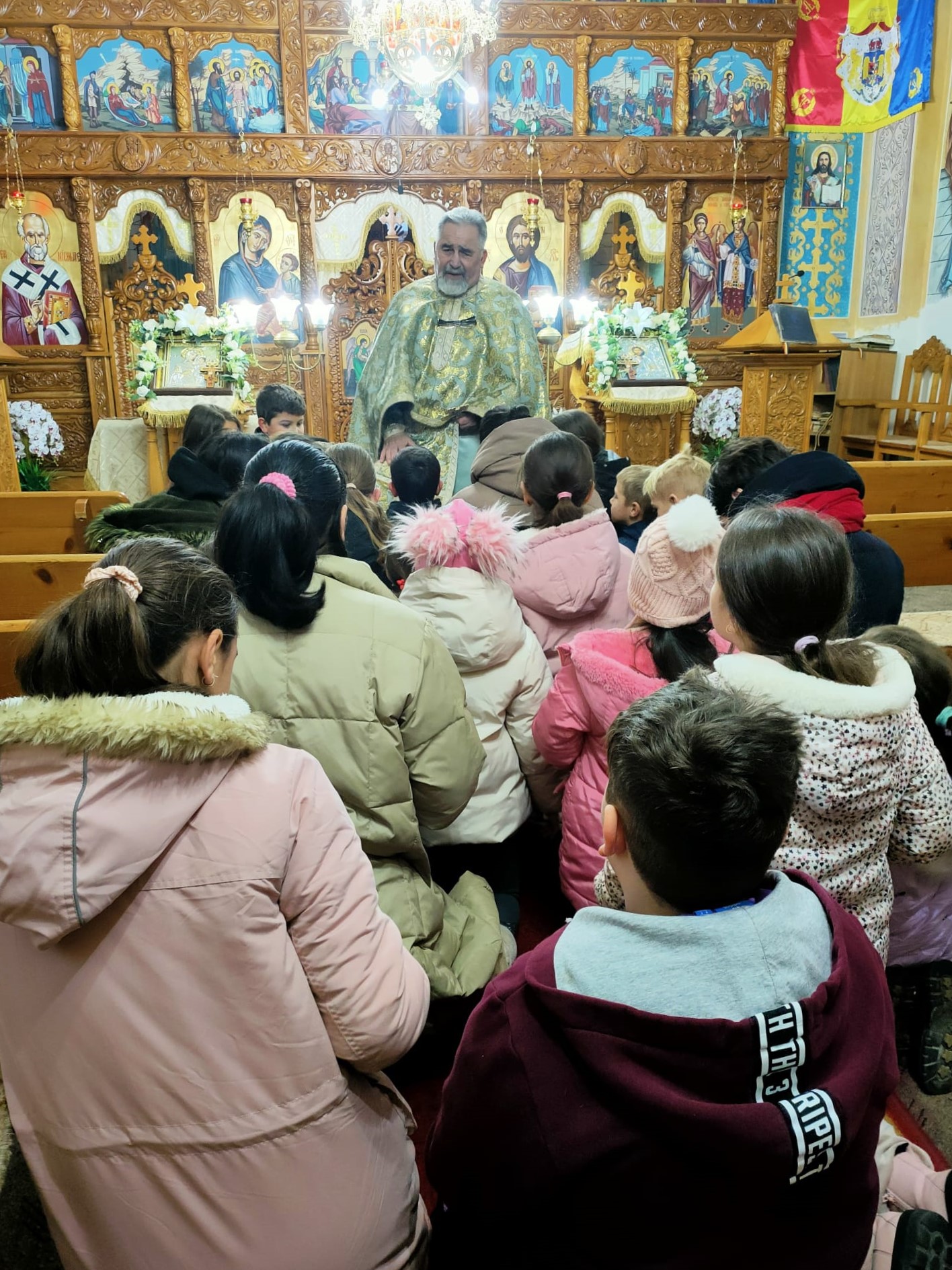 La momentul rânduit din cadrul Dumnezeieștii Liturghii, tinerii s-au împărtășit cu Trupul și Sângele Domnului, punând astfel în practică informațiile și cunoștințele dobândite la orele de Religie. La finalul slujbei, am reflectat împreună asupra semnificației acestei mari sărbători care se apropie, colindând cu bucurie și evlavie în spațiul liturgic, ca într-o șezătoare, înălțându-ne sufletul în rugăciune. Simțeam, cu toții, că Pruncul S-a născut în sufletele noastre.