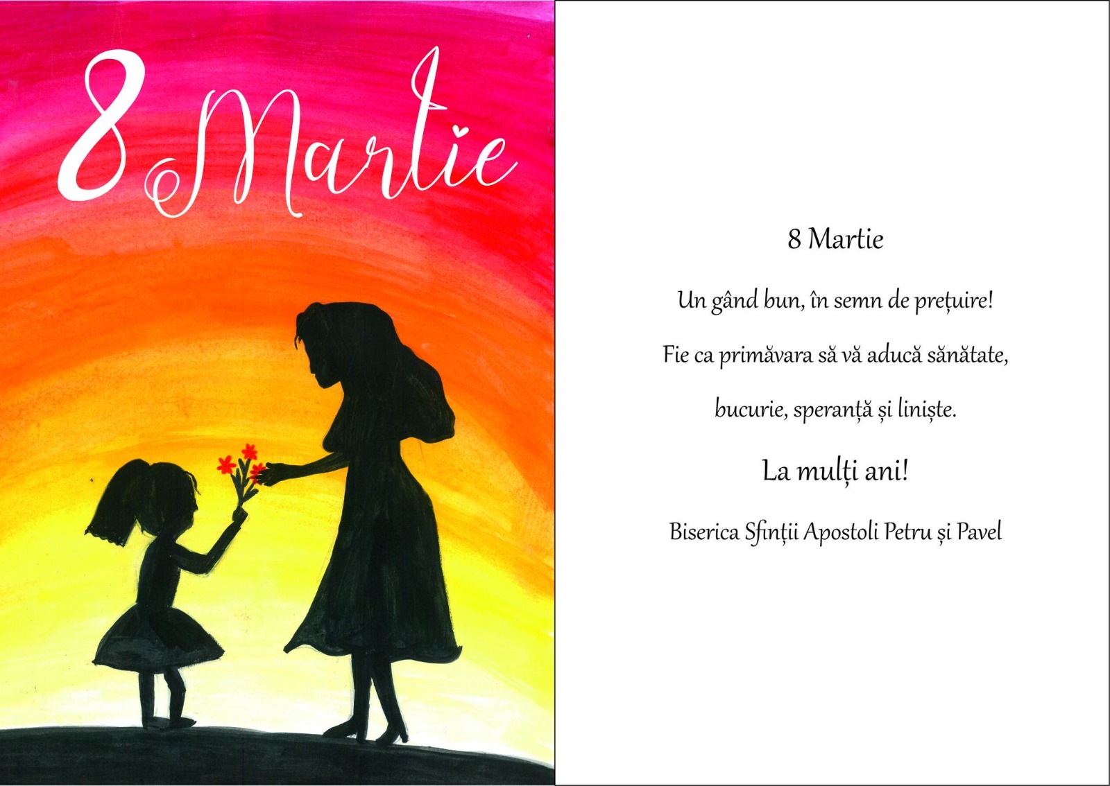 Totodată, cu sprijinul Consiliului Parohial, au fost confecţionate peste 300 de felicitări, cu ocazia zilei de 8 Martie, ce au fost oferite tuturor credincioaselor din parohie, de către copiii care au efectuat muncă de voluntariat. Felicitările sunt deosebite întrucât conțin imaginea unei picturi realizate de către un elev al Şcolii Gimnaziale ,,Ioan Mihu” din Vinerea.