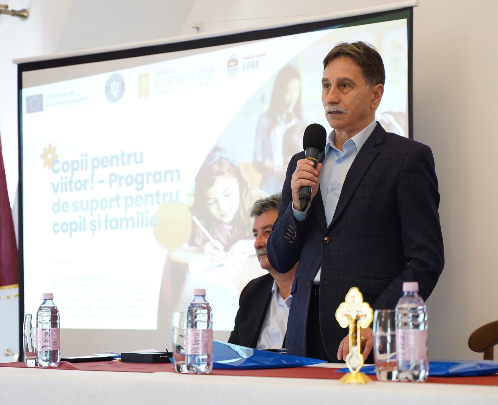 În continuare, de la ora 13.00, a avut loc lansarea Proiectului „Copii pentru viitor! – Program suport pentru copil și familie”, demarat în parteneriat cu Primăria Comunei Șona. Proiectul, în valoare de peste 9,9 milioane de lei, este finanțat de către Uniunea Europeană, prin Programul de Incluziune și Demnitate Socială. Scopul principal al proiectului este reprezentat de prevenirea separării copiilor de mediul familial și reducerea riscului de instituționalizare, beneficiari fiind 270 de copii (și familiile acestora) de pe raza mai multor unități teritorial-administrative ale județului Alba: Alba Iulia, Baia de Arieș, Blaj, Abrud, Valea Lungă, Roșia de Secaș, Hopârta, Vama Seacă, Silivaș și Șona. Pentru a extinde și diversifica activitatea social-filantropică din aceste comunități, se va înființa în comuna Șona un nou centru de zi.