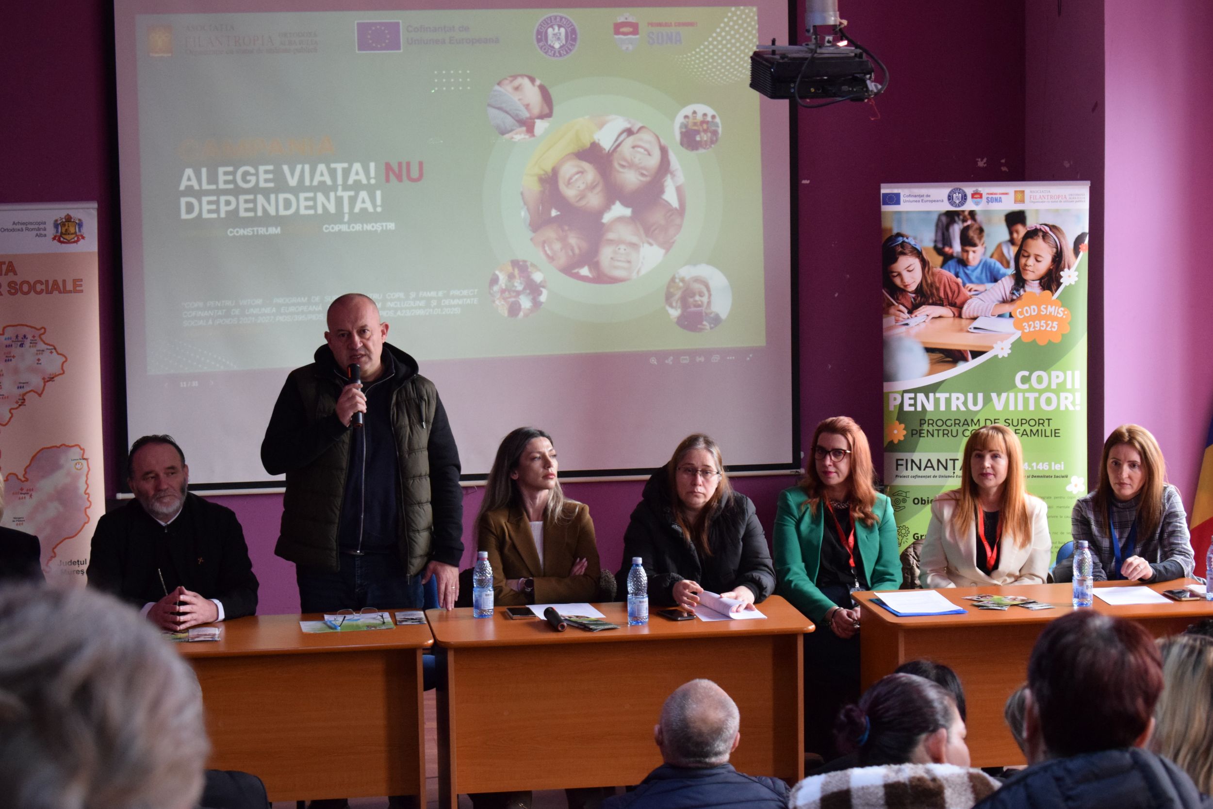 În data de 2 aprilie 2026, începând cu ora 12.30, la „Școala de Aplicație” din Abrud, a avut loc o nouă întâlnire comunitară din cadrul campaniei „Alege viața! Nu dependența!”, care a reunit aproximativ 80 de participanți – părinți, cadre didactice și oameni ai comunității –, alături de reprezentanți ai instituțiilor județene partenere, într-un dialog despre prevenirea dependențelor și despre felul în care intervenția timpurie poate schimba un drum înainte ca acesta să se frângă.
