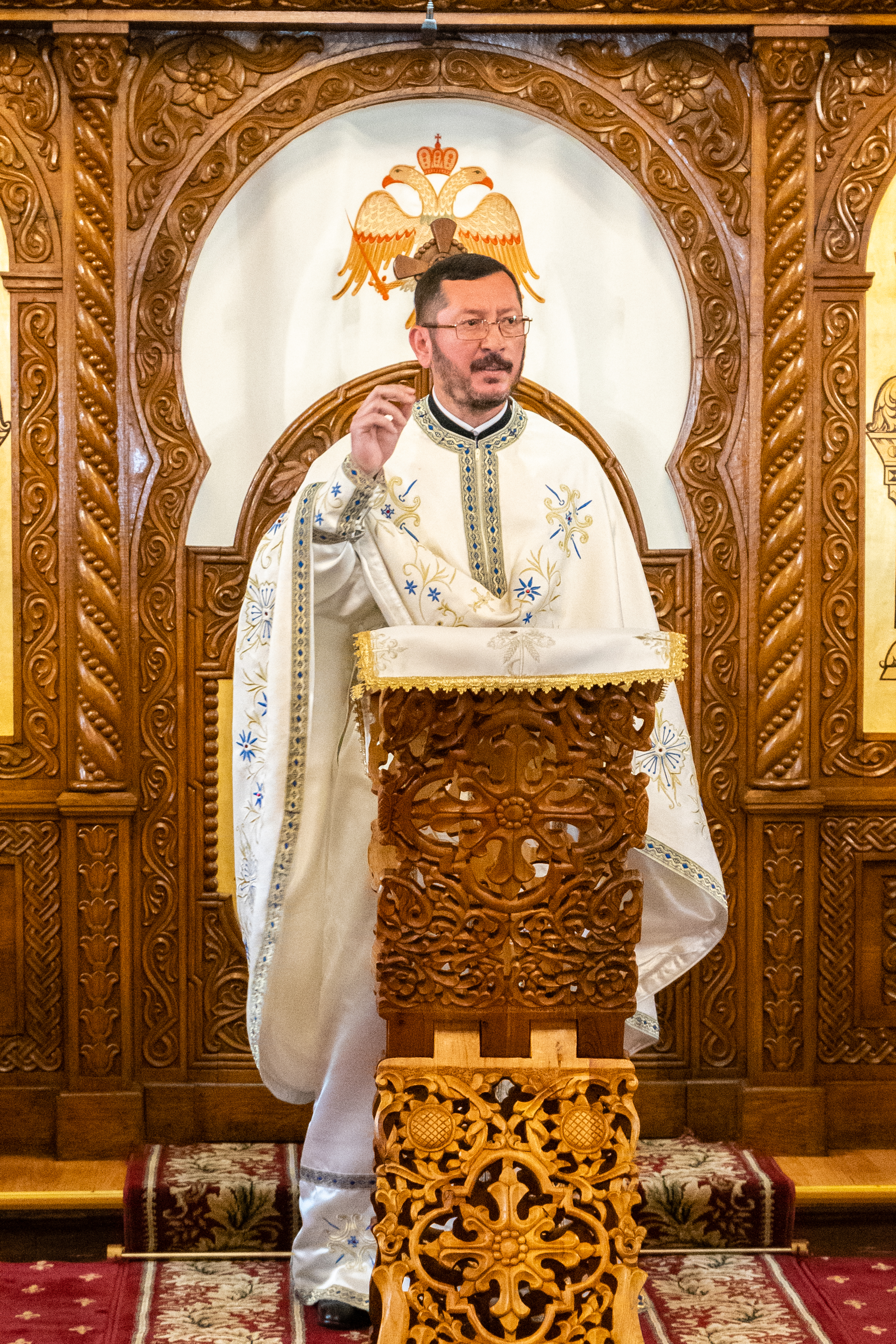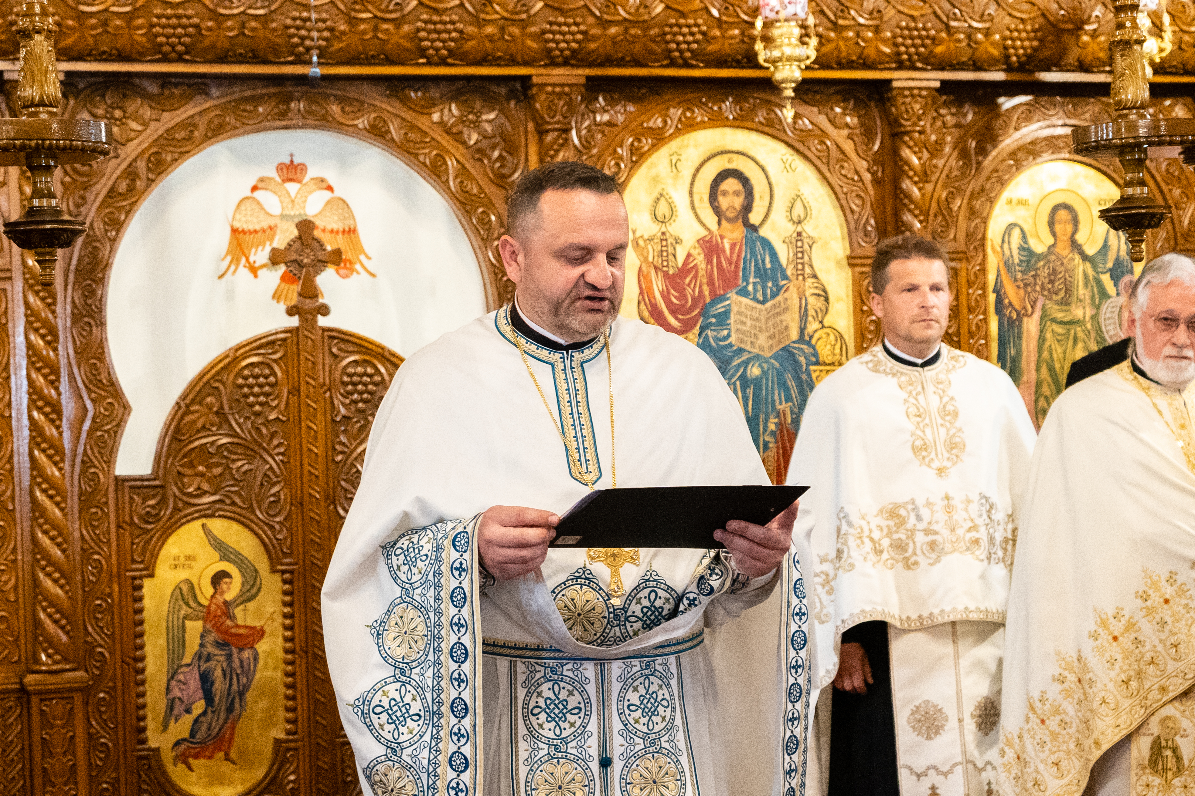La finalul Dumnezeieștii Liturghii, a luat cuvântul părintele Ioan Bogdan, preot al parohiei Aiud II și protopop al Aiudului, care i-a felicitat pe toți membrii corului pentru activitatea deosebită depusă de-a lungul timpului. De asemenea, sfinția sa a prezentat un scurt istoric al tuturor formațiunilor corale existente în cadrul acestei parohii pe parcursul anilor, subliniind importanța momentului aniversar de acum: „Acest eveniment este unul istoric pentru Corul bisericii «Sfinții Trei Ierarhi» și pentru credincioșii acestei parohii și îl vom incrusta pe răbojul vremii și al neuitării. Prin această mărturisire de credință în formă artistică, Corul bisericii noastre transmite luminile Ortodoxiei, dar și cele ale spiritualității și culturii românești”.