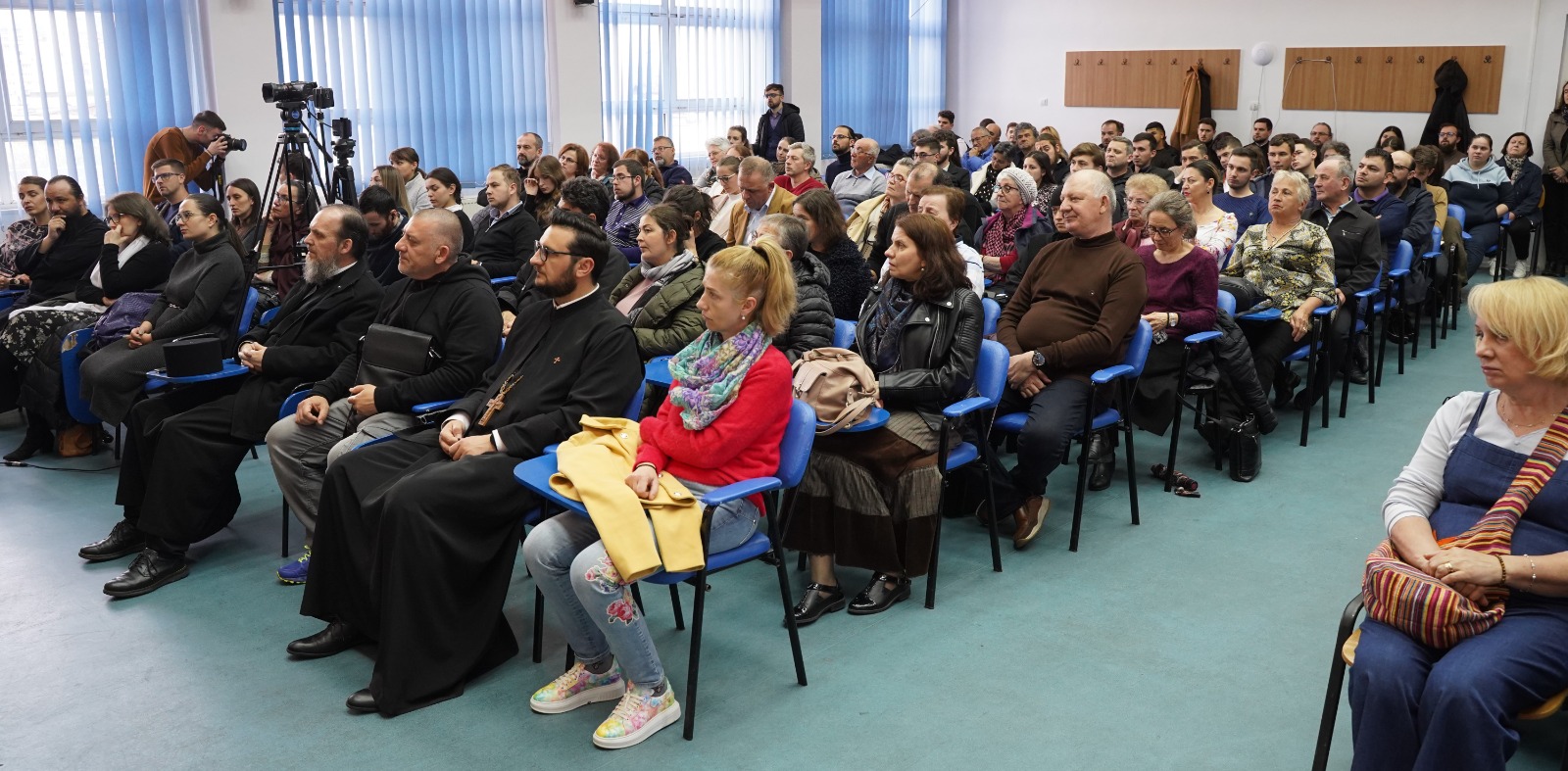 Întâlnirea a reunit numeroși clerici, credincioși, elevi seminariști, studenți teologi, dar și tineri ai altor programe de licență din cadrul Universității „1 Decembrie 1918” din Alba Iulia. În debutul conferinței, coordonatorul departamentului cultural în cadrul ASCOR Alba Iulia, studentul Alexandru Mirci, a realizat o succintă prezentare a activității pastorale și misionare a celor doi invitați, subliniind prezența valoroasă a acestora în taberele pentru tineri găzduite de Mănăstirea „Sfântul Mare Mucenic Pantelimon” de la Oașa sau de Schitul „Sfântul Ioan Evanghelistul” de la Găbud. Totodată, Alexandru Mirci a explicat contextul în care a fost aleasă tema de față: de peste doi ani, părinții ieromonahi fac parte dintr-o comunitate ce reunește mai mult de 1000 de persoane, care citesc zilnic „Psaltirea”, motiv pentru care, periodic, organizează tâlcuiri ale acesteia.
