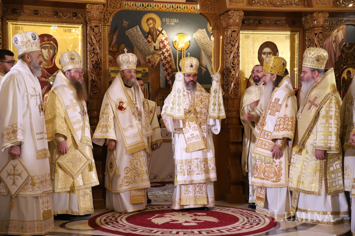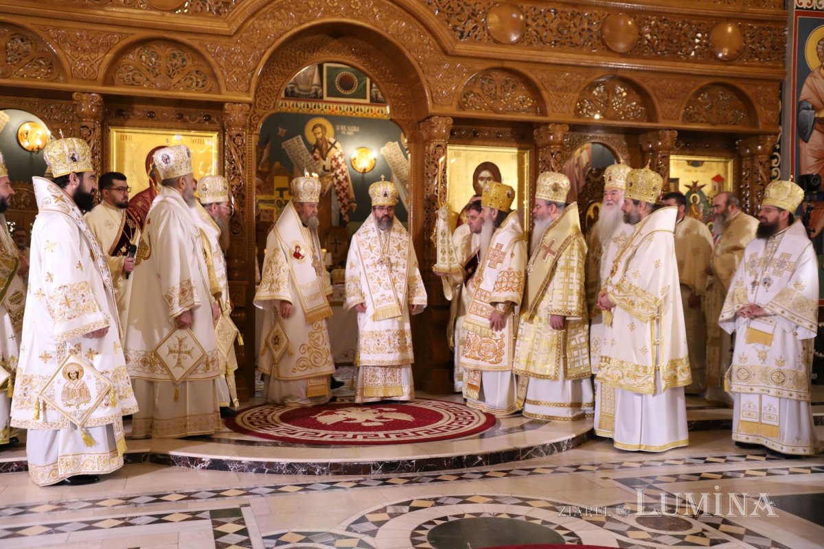Din soborul arhiereilor slujitori au mai făcut parte Înaltpreasfinţitul Părinte Teodosie, Arhiepiscopul Tomisului, Preasfinţitul Părinte Ignatie, Episcopul Huşilor, Preasfinţitul Părinte Lucian, Episcopul Caransebeşului, Preasfinţitul Părinte Nicodim, Episcopul Severinului şi Strehaiei, Preasfinţitul Părinte Andrei, Episcopul Covasnei şi Harghitei, Preasfinţitul Părinte Galaction, Episcopul Alexandriei şi Teleormanului, Preasfinţitul Părinte Sebastian, Episcopul Slatinei şi Romanaţilor, Preasfinţitul Părinte Nestor, Episcopul Devei şi Hunedoarei, Preasfinţitul Părinte Ieronim, Episcopul Daciei Felix, Preasfinţitul Părinte Nichifor Botoşăneanul, Episcopul-vicar al Arhiepiscopiei Iaşilor, Preasfinţitul Părinte Ilarion Făgărăşanul, Episcopul-vicar al Arhiepiscopiei Sibiului, Preasfinţitul Părinte Benedict Bistriţeanul, Episcopul-vicar al Arhiepiscopiei Vadului, Feleacului şi Clujului, Preasfinţitul Părinte Paisie Lugojanul, Episcopul-vicar al Arhiepiscopiei Timişoarei, Preasfinţitul Părinte Damaschin Dorneanul, Episcopul-vicar al Arhiepiscopiei Sucevei şi Rădăuţilor, Preasfinţitul Părinte Emilian Crişanul, Episcop-vicar al Arhiepiscopiei Aradului, Preasfinţitul Părinte Timotei Sătmăreanul, Arhiereul-vicar al Episcopiei Maramureşului şi Sătmarului. De asemenea, la Sfânta Liturghie a fost prezent și Preasfinţitul Părinte Episcop Daniil Stoenescu.
