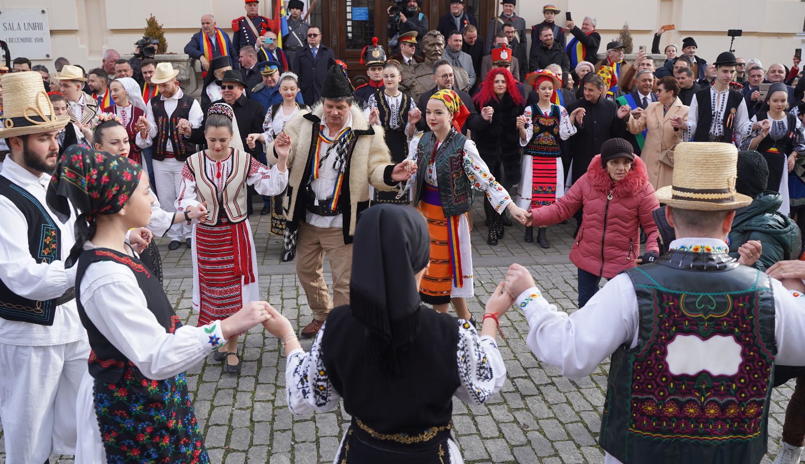 În continuare, după slujba de Te-Deum, domnul Nicolae Albu, Prefectul Județului Alba, a dat citire mesajului transmis cu prilejul acestui eveniment de către domnul Nicolae Ciucă, Prim-ministrul României. Apoi, doamna Ioana Ursu, muzeograf în cadrul Muzeului Național al Unirii din Alba Iulia, a rostit o alocuțiune privind semnificația istorică a Unirii Principatelor Române. De asemenea, evenimentul derulat pe esplanada Sălii Unirii a cuprins un spectacol de reconstituire istorică a momentului din data de 24 ianuarie 1859. La final, fanfara Centrului de Cultură „Augustin Bena” Alba, alături de dansatorii județului Alba (coregraf: Nicolae Moldovan) și un grup de tineri maramureșeni au interpretat Hora Unirii.
