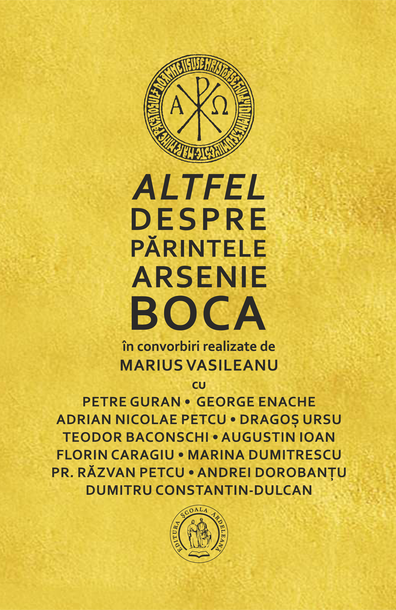 Facultatea de Teologie Ortodoxă Alba Iulia și Editura Școala Ardeleană vă invită la lansarea volumului „Altfel despre Părintele Arsenie Boca” - în convorbiri realizate de Marius Vasileanu cu Petre Guran, George Enache, Adrian Nicolae Petcu, Dragoș Ursu, Teodor Baconschi, Augustin Ioan, Florin Caragiu, Marina Dumitrescu, Pr. Răzvan Petcu, Andrei Dorobanțu și Dumitru Constantin-Dulcan și cu o Postfață semnată de Sever Voinescu.