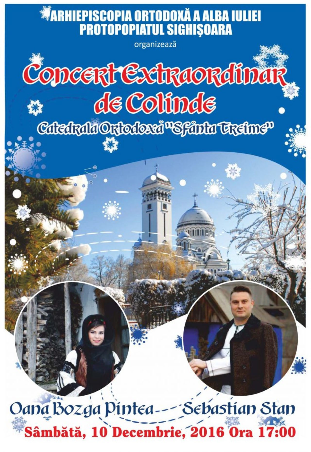 Cu binecuvântarea Înaltpreasfinţitului Părinte Arhiepiscop Irineu al Alba Iuliei, Protopopiatul Ortodox Sighişoara organizează sâmbătă, 10 decembrie 2016, de la ora 17.00, la biserica cu hramul "Sfânta Treime" din Sighişoara, un concert extraordinar de colinde tradiţionale româneşti în cinstea Marelui Praznic al Naşterii Domnului.