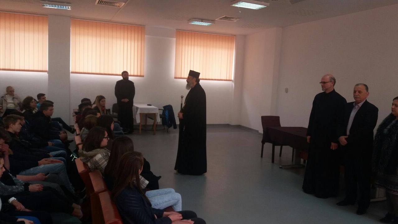 În continuare, Părintele Arhiepiscop Irineu a poposit în mijlocul elevilor de la Colegiul Agricol „Traian Săvulescu”, cărora le-a pus la suflet un scurt cuvânt de învățătură. Director al acestei unități de învățământ este domnul profesor Viorel Socol.