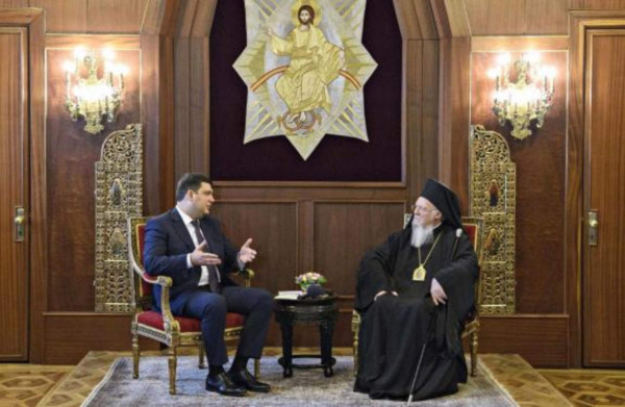 Primul-Ministru al Ucrainei, la rândul său, a lăudat rolul principal al Patriarhiei Ecumenice și al Patriarhului Bartolomeu însuși, în ceea ce privește sprijinul pentru unitatea Ortodoxiei ucrainene şi a mulțumit Patriarhului Bartolomeu, pentru înțelepciunea sa, binecuvântări și dragostea faţă de Ucraina și pentru sprijinul în rugaciune în momentele dificile pentru țară.