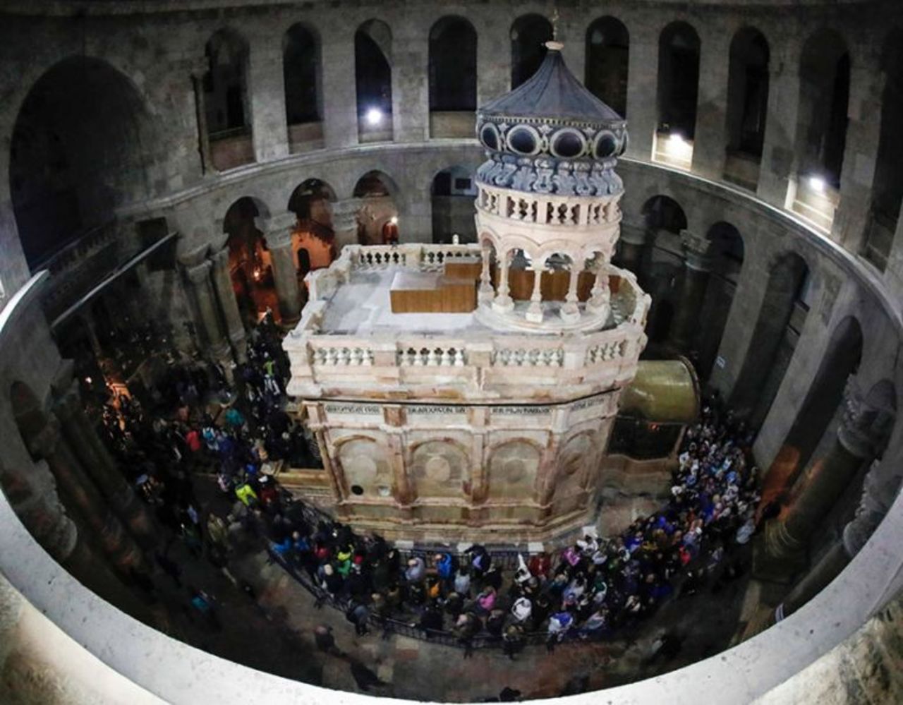 Sursa: basilica.ro [http://basilica.ro/baldachinul-sfantului-mormant-a-fost-sfintit-mii-de-oameni-au-vizitat-astazi-edificiul-restaurat/]