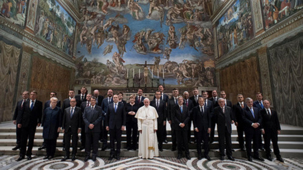 La întâlnirea cu liderii statelor UE, printre care s-a numărat și Klaus Iohannis, Papa Francisc a pledat pentru unitate europeană, subliniind că UE nu trebuie să însemne doar idealuri economice, ci și valori morale. Suveranul Pontif a amintit de eforturile pentru constituirea comunității europene și subliniind că UE nu trebuie să însemne doar idealuri economice, ci și valori morale, relatează site-ul agenției ANSA, preluată de Agerpres. [http://www.agerpres.ro/externe/2017/03/24/papa-francisc-ue-risca-sa-moara-fara-idealuri-ca-solidaritatea--21-06-55]