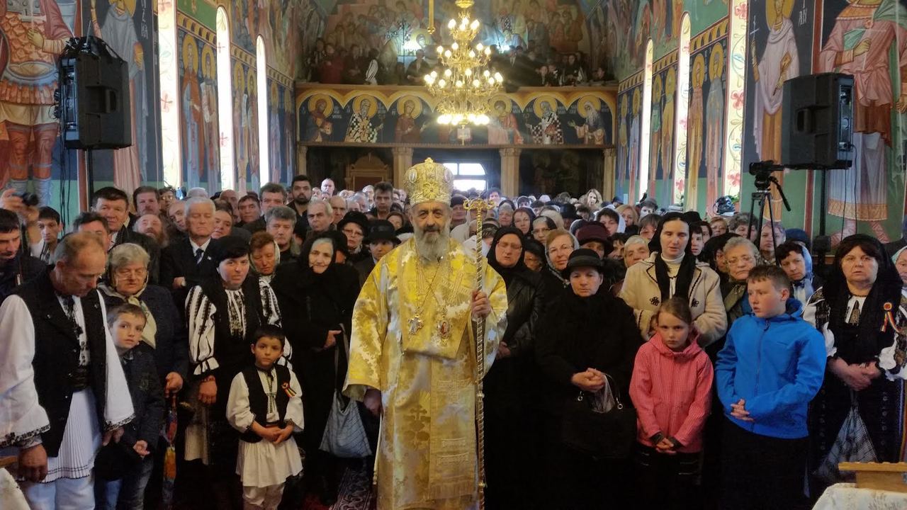 După slujba de târnosire, Părintele Arhiepiscop Irineu a oficiat Sfânta și Dumnezeiasca Liturghie și a rostit un deosebit cuvânt de învățătură, spunându-le celor prezenți: „Iubiții mei, sacrificiul suprem de pe Golgota și supliciul răstignirii pe cruce L-au condus pe Iisus Hristos spre înviere și spre biruință. Pe această cale îngustă, de două mii de ani, au pășit toți martirii creștinismului, între care la loc de cinste se află Sfântul Mare Mucenic Gheorghe, pe care azi îl pomenim. Sângele martirilor a constituit o sămânță roditoare pentru noi generații de creștini, precum afirmă apologetul Tertulian. De aceea, locașurile de închinare s-au înălțat pe mormintele acestor atleți ai lui Hristos. Iată de ce atunci când sfințim o biserică, așezăm în Masa Sfântului Altar moaște de martiri. Prin aceasta se exprimă adevărul că nu poți fi membru adevărat al Bisericii, adică nu poți fi ucenic al Maestrului răstignit, decât făcându-te părtaș la starea de jertfă a lui Hristos”.