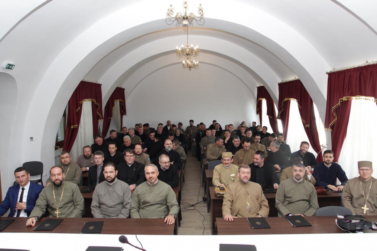Marţi, 3 octombrie a.c., Înaltpreasfinţitul Părinte Arhiepiscop Irineu a participat la Convocarea anuală de specialitate a preoţilor militari din Armata României, desfăşurată la Alba Iulia în perioada 2-5 octombrie. După oficierea Sfintei Liturghii şi a slujbei de Te-Deum în Catedrala Reîntregirii, participanţii s-au îndreptat spre sala de conferinţe a Căminului bisericesc Peregrinus, unde s-a derulat programul întâlnirii. În cadrul deschiderii solemne a convocării, Arhipăstorul nostru le-a adresat preoţilor militari un cuvânt de bun venit în Cetatea Marii Uniri, subliniind rolul deosebit pe care aceasta l-a avut în istoria poporului român, aici funcţionând oarecând şi Episcopia Armatei Române. În continuare, Înaltpreasfinţitul Irineu a remarcat responsabilitatea misiunii preoţilor militari, dar şi importanţa ei în cadrul Armatei: Preotul responsabil cu asistenţa religioasă în armată este dator să pună mereu în faţa militarilor chipul luminos al lui HRISTOS, Modelul sublim de virtute, de credinţă, nădejde, iubire, curaj şi hărnicie. El este „Leul lui Iuda” (cf. Apoc. 5, 5), Cel mai viteaz între viteji, Eroul de pe Golgota, Biruitorul etern al iadului şi al morţii. De la Hristos învăţăm adevărul despre om, coroana creaţiei, şi despre modul în care acesta îşi poate îndeplini scopul existenţei sale. De la Hristos învăţăm că lumea are frumuseţe şi valoare, dar nu în sine, ruptă de Dumnezeu, ci în legătură cu viaţa adevărată şi eternă, ca stadiu şi perioadă de pregătire pentru veşnicie. Bine spunea Bătrânul Porfirie din Attica (†1991): „Viaţa fără Hristos nu este viaţă”. Preotul responsabil cu asistenţa religioasă în armată mai este dator să se străduiască a transforma unitatea militară într-o şcoală a bărbăţiei, cinstei, demnităţii şi onoarei ostăşeşti, dar şi o şcoală a armoniei, unităţii şi fraternităţii în Hristos. În acest scop, trebuie să înlăture ura şi duşmănia dintre ostaşi, bazate pe criterii politice, etnice, de apartenenţă regională sau chiar religioasă. În aceste timpuri marcate de materialism şi relativism moral, când viaţa omenirii îşi pierde adevăratele sale valenţe structurale, clerul militar trebuie să cultive în sânul Armatei Române respectul pentru Legea divină. Totodată, e bine ca Sfinţiile Voastre să-i încredinţaţi pe militarii români că „numai lângă Dumnezeu află omul bucuria cea adevărată şi veşnică” precum ne asigură Sfântul Paisie Aghioritul (†1994). În zilele următoare, programul convocării cuprinde o serie de prelegeri susţinute de preoţii militari, cu o tematică specifică Anului omagial al sfintelor icoane, al iconarilor şi al pictorilor bisericeşti şi Anului comemorativ Justinian Patriarhul şi al apărătorilor Ortodoxiei în timpul comunismului în Patriarhia Română, precum şi vizite în Cetatea Marii Uniri.