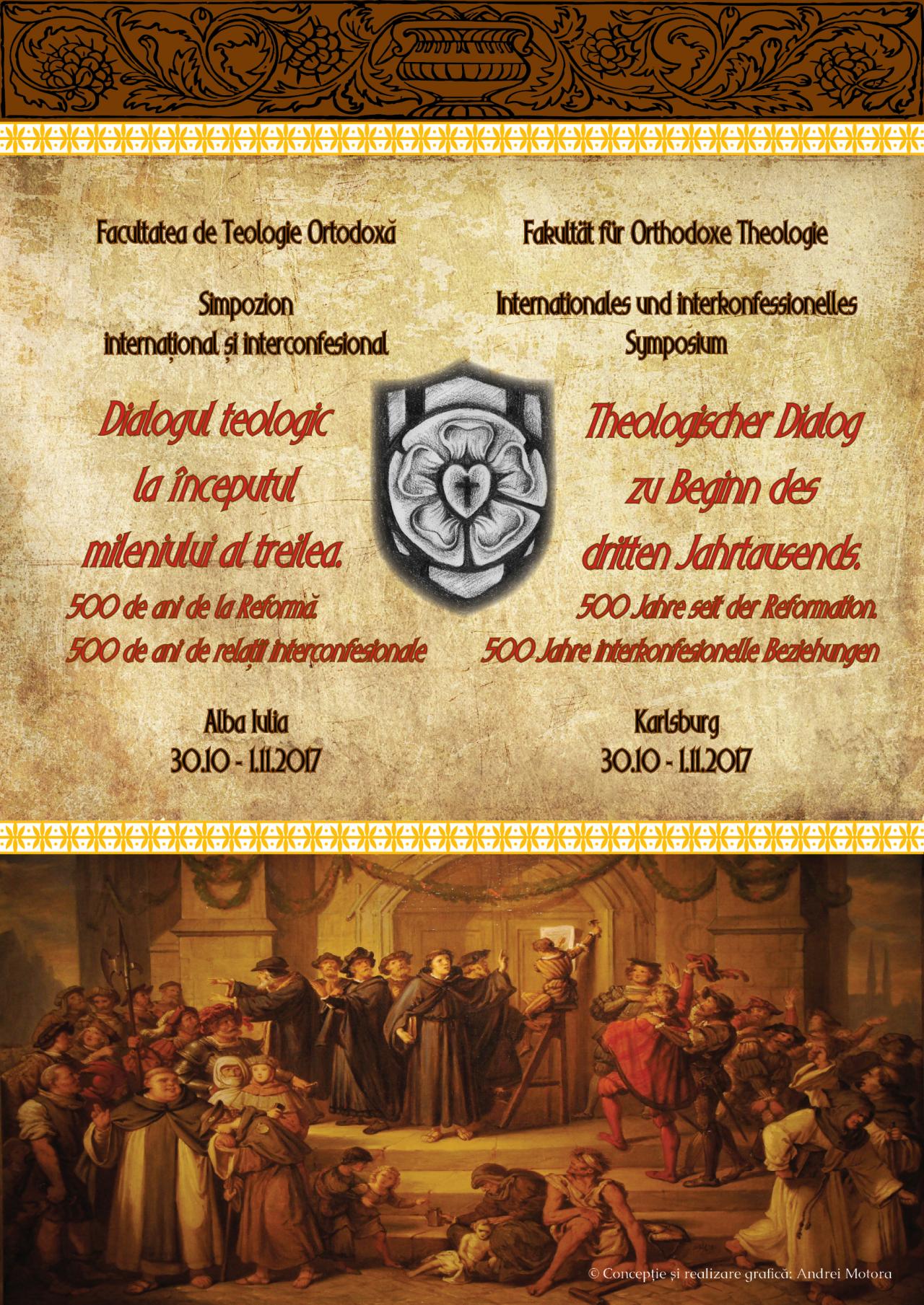 În perioada 30 octombrie – 1 noiembrie a.c., cu binecuvântarea Înaltpreasfințitului Părinte Irineu, Arhiepiscop al Alba Iuliei, la Facultatea de Teologie Ortodoxă din Alba Iulia, se desfășoară lucrările simpozionului teologic româno-german, internațional și interconfesional, Dialogul teologic la începutul mileniului al treilea. 500 de ani de la Reformă. 500 de ani de relații interconfesionale. Simpozionul va debuta cu slujba de Te-Deum, oficiată în Capela școlii teologice, începând cu ora 9.30. În continuare, în Aula „Dumitru Stăniloae” va avea loc primirea şi salutul invitaţilor, urmate de deschiderea oficială a sesiunii de lucrări ştiinţifice. Cuvântul de bun-venit va fi adresat de către pr. drd. Wolfgang Wunsch. Conferinţele susţinute la Alba Iulia de către cadre didactice şi personalităţi ale lumii culturale din ţară şi străinătate, urmate de ample dezbateri, vor prezenta diferite aspecte ale istoriei dialogului dintre protestantism și ortodoxie în spațiul transilvănean, precum și confluențe și influențe reciproce. Manifestările de la Alba Iulia, prilejuite de aniversarea a 500 de ani de la Reformă, doresc a se înscrie pe linia deja tradițională a dialogului ecumenic inițiat în secolul XX. Astfel, simpozionul interconfesional de la Alba Iulia are ca scop clarificarea unor puncte comune de discuție, precum și realizarea unui pas mai departe de la distanță la comuniune.