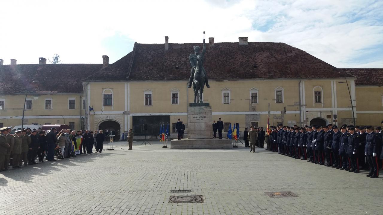 Miercuri, 1 noiembrie a.c., împlinirea a 418 ani de la intrarea triumfală a voievodului Mihai Viteazul în cetatea Alba Iuliei a fost sărbătorită printr-o manifestare desfăşurată în faţa palatului în care acesta a locuit în prima jumătate a anului 1600 și în faţa statuii ecvestre, ridicată în anul 1968, în amintirea primului unificator al Țărilor Române.