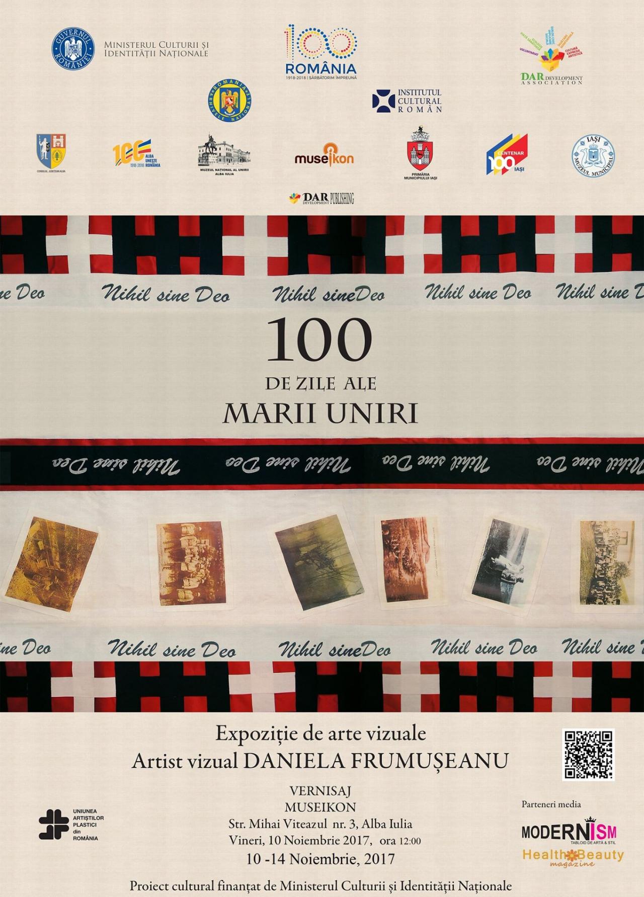 La Muzeul icoanei și al cărții vechi din Alba Iulia, Museikon, a fost organizată expoziția 100 de zile ale Marii Uniri, care a constat într-o prezentare vizuală inedită, aflată la confluența artelor plastice cu valorificarea patrimoniului. Acest proiect expozițional a înfățișat simbolic, prin elemente cu puternic impact vizual, scene ce preced și succed momentul Marii Uniri de la Alba Iulia din 1918. Vernisajul expoziției a avut loc vineri, 10 noiembrie a.c., și a fost deschisă publicului până luni 13 noiembrie. Expoziția s-a bucurat de un număr mare de vizitatori care au fost impresionați de aspectul inedit și de valoarea simbolică a aranjamentelor expoziționale. Marţi, 14 noiembrie a.c., la clădirea celui mai nou muzeu din Alba Iulia, Museikon, a avut loc vernisajul expoziţiei fotodocumentare intitulată Gară pe drumul Marii Uniri. Acest eveniment face parte dintru-un proiect de promovare a patrimoniului cultural care a fost iniţiat de către Asociaţia DAR Development. Această organizaţie neguvernamentală de tineret încearcă să scoată la iveală latura culturală, educaţională şi să implice întreaga parte socială. În cadrul expoziţiei, echipa DAR Development împreună cu colaboratorii lor, au pus în lumină, cu ajutorul unor documente din arhive şi a unor fotografii inedite, rolul deosebit de important la căilor ferate în procesul de dezvoltare a României Moderne şi pe tot parcursul Primului Război Mondial. Acest eveniment a fost pregătit de către specialiştii Arhivelor Naţionale ale României, ai Muzeului Naţional al Unirii şi de cei de la Consiliul Judeţean Alba. La acest vernisaj au fost prezenţi domnul Ion Dumitrel - preşedintele Consiliului Judeţean Alba, domnul Dumitru Fulea - vicepreşedintele Consiliului Judeţean Alba, domnul Emil Hălălai - prefectul Judeţului Alba, domnul Gabriel Rustoiu - directorul Muzeului Naţional al Unirii, părintele Oliviu Botoi - consilier cultural în cadrul Arhiepiscopiei Alba Iuliei şi alţi oameni de cultură ai oraşului Marii Uniri. Expoziţia a fost prezentată de către doamna Alexandru Brutaru, preşedinta Asociaţiei DAR Devepolment. Expoziţia aflată în noua secţie muzeală a Muzeului Naţional al Unirii din Alba Iulia, Museikon, va putea fi admirată de către toţi cei care vor fi prezenţi la evenimentele prilejuite de ziua de 1 decembrie din acest an.