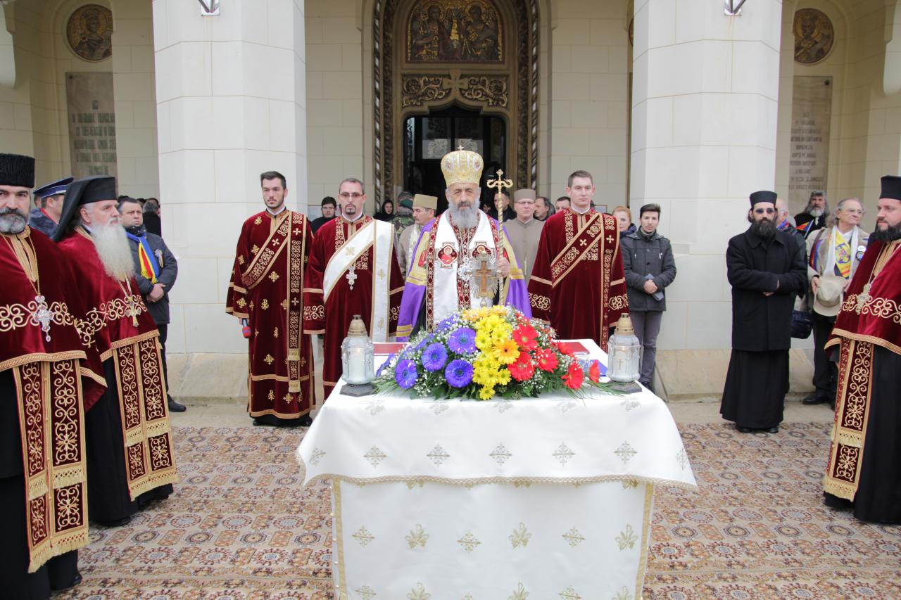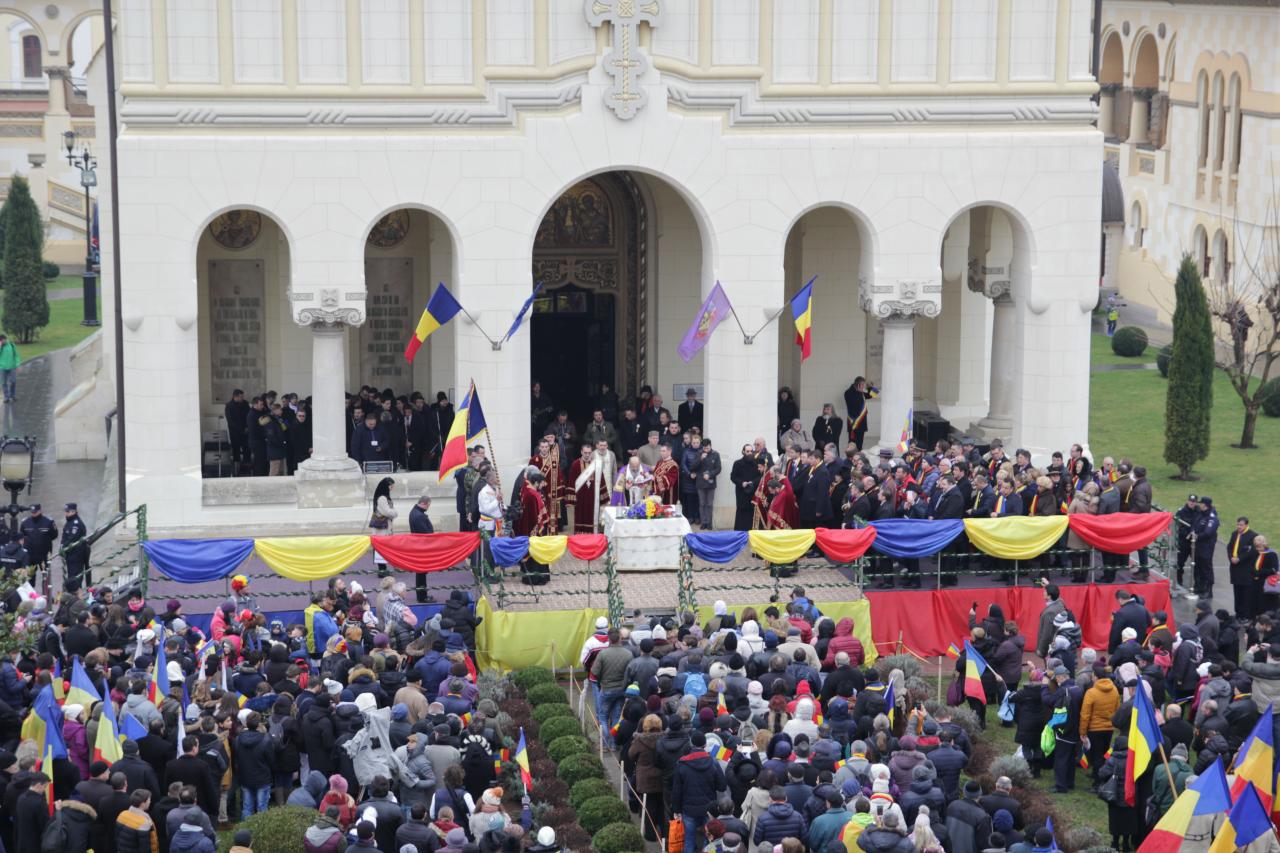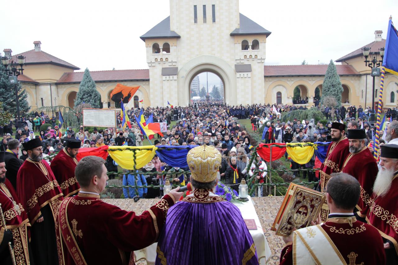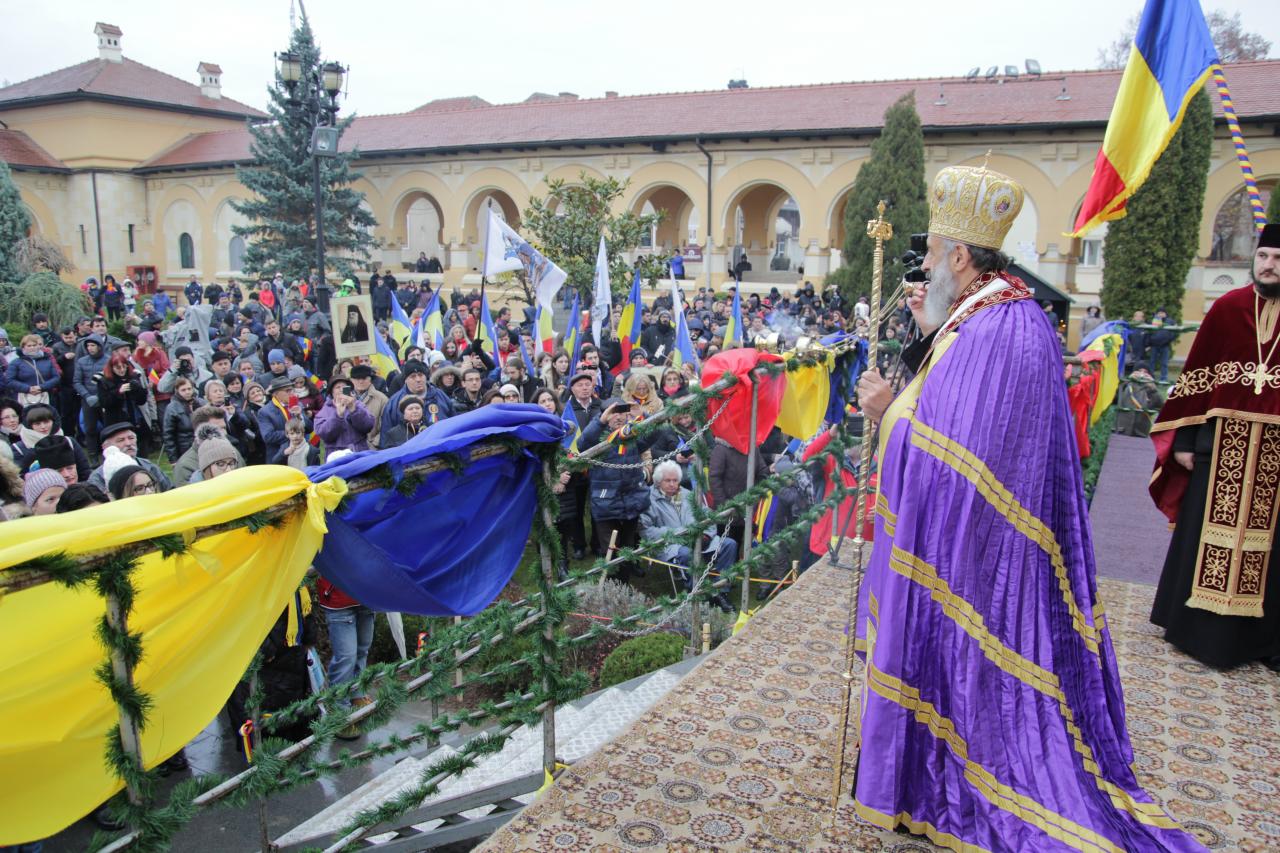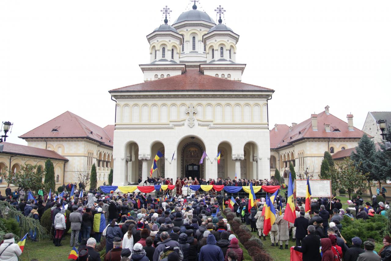 Cu prilejul Zilei Naționale a României, Înaltpreasfințitul Părinte Arhiepiscop Irineu a celebrat Sfânta și Dumnezeiasca Liturghie în Catedrala Reîntregirii din Cetatea Marii Uniri, după care a oficiat slujba de Te-Deum pe esplanada din fața acestui edificiu eclesial – simbol al neamului nostru românesc. Cu multă bucurie în suflet, dar și cu emoție sfântă, numeroși credincioși din toate colțurile țării și de peste granițele acesteia au luat parte la sfintele slujbe, aducând mulțumire lui Dumnezeu pentru toate binefacerile revărsate asupra poporului român, de-a lungul timpului. Cu această ocazie aniversară, Părintele Arhiepiscop Irineu a adresat un vibrant cuvânt românilor sosiți la Alba Iulia. În finalul cuvântării sale, Înaltpreasfinția Sa a spus: „Sufletul neamului nostru a fost prigonit, prins şi judecat la moarte pe cruce. Drumul crucii spre Golgota a fost greu, iar răstignirea noastră între tâlhari a fost chinuitoare şi ruşinoasă. Acest suflet a fost îngropat în bezna temniţelor umede. Dar, cu toate acestea, puterile neamului românesc n-au putut fi zdrobite pentru totdeauna. După secole, vine uraganul ce risipeşte minciuna şi omoară nelegiuirea, făcând să învie dreptatea şi libertatea. S-a cutremurat pământul românesc al Transilvaniei, catapeteasma împărăţiilor a crăpat, porţile iadului s-au zdrobit, sufletul neamului a înviat în strălucire dumnezeiască, iar păzitorii temniţelor au orbit de puterea luminii. Aceasta s-a petrecut la 1 decembrie 1918, ziua biruinţei noastre veşnice, înfăptuirea României Mari. Se cuvine să fim recunoscători Bunului Dumnezeu, Care ne-a aşezat aici, în acest paradis etnic. Suntem singurii care, de două mii de ani, nu ne-am clintit şi toţi vecinii noştri ne-au găsit în aceste ţinuturi. Suntem singurii care nu ne-am inventat şi n-am împrumutat credinţa, ci Dumnezeu ne-a plămădit ca popor creştin, trimiţându-l pe pământul Daciei pe Sfântul Apostol Andrei. Istoria milenară ne-a arătat că toţi aceia care, indecent, aventuros sau circumstanţial, au încercat să maculeze, licenţios, destinul acestui popor, au plătit, mai curând sau mai târziu, ireconciliabil, tragic şi inexorabil. La această sărbătoare naţională, să-i mulţumim Celui-Preaînalt în biserici şi mănăstiri, pentru modul providenţial în care a lucrat în sânul Neamului românesc. Datori suntem să ne ridicăm la acea simţire înaltă care a însufleţit pe bravii noştri înaintaşi ce ne-au lăsat o scumpă moştenire: România întregită”.