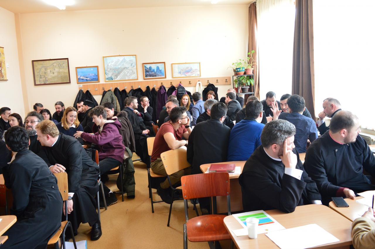 Sâmbătă, 3 februarie a.c., cu binecuvântarea Înaltpreasfințitului Părinte Irineu, Arhiepiscop al Alba Iuliei, a avut loc întâlnirea anuală de lucru a Grupurilor de inițiativă pentru tineret din cuprinsul Eparhiei noastre. Aceste grupuri de inițiativă sunt constituite la nivelul fiecărui protopopiat și sunt alcătuite din preoți, profesori și tineri voluntari, implicați în diferite activități cu tinerii. La întâlnire au participat reprezentanți din fiecare Grup de inițiativă, însoțiți de către părinții protopopi. Începând cu ora 10:00, în sala multimedia din cadrul Seminarului Teologic Ortodox „Sfântul Simion Ștefan” din Alba Iulia s-a desfășurat ședința de lucru. După cuvântul de deschidere și după enunțarea ordinii de zi de către părintele Oliviu Botoi, consilier cultural al Arhiepiscopiei Alba Iuliei, cei aproximativ 50 de participanți au prezentat activitățile cu tinerii desfășurate în anul 2017. În continuare, părintele Păunel Juchi, coordonatorul Departamentului de tineret, a realizat o succintă analiză a activităților realizate, propunând noi coordonate de acțiune pentru anul 2018. În vederea eficientizării lucrului cu tinerii, a urmat o dezbatere legată de organizarea întâlnirilor municipale și orășenești de tineret, organizarea serilor duhovnicești în parohii și organizarea taberelor de vară în mai multe locații din cele două județe ale Arhiepiscopiei. În urma discuțiilor și în urma unor analize pertinente s-a constatat nevoia realizării unui curs specializat pentru cei care lucrează cu tinerii la nivelul protoieriilor și nevoia unei cooperări rodnice între parohii și alte instituții sau organizații ce au drept scop educarea tinerilor pentru viață.