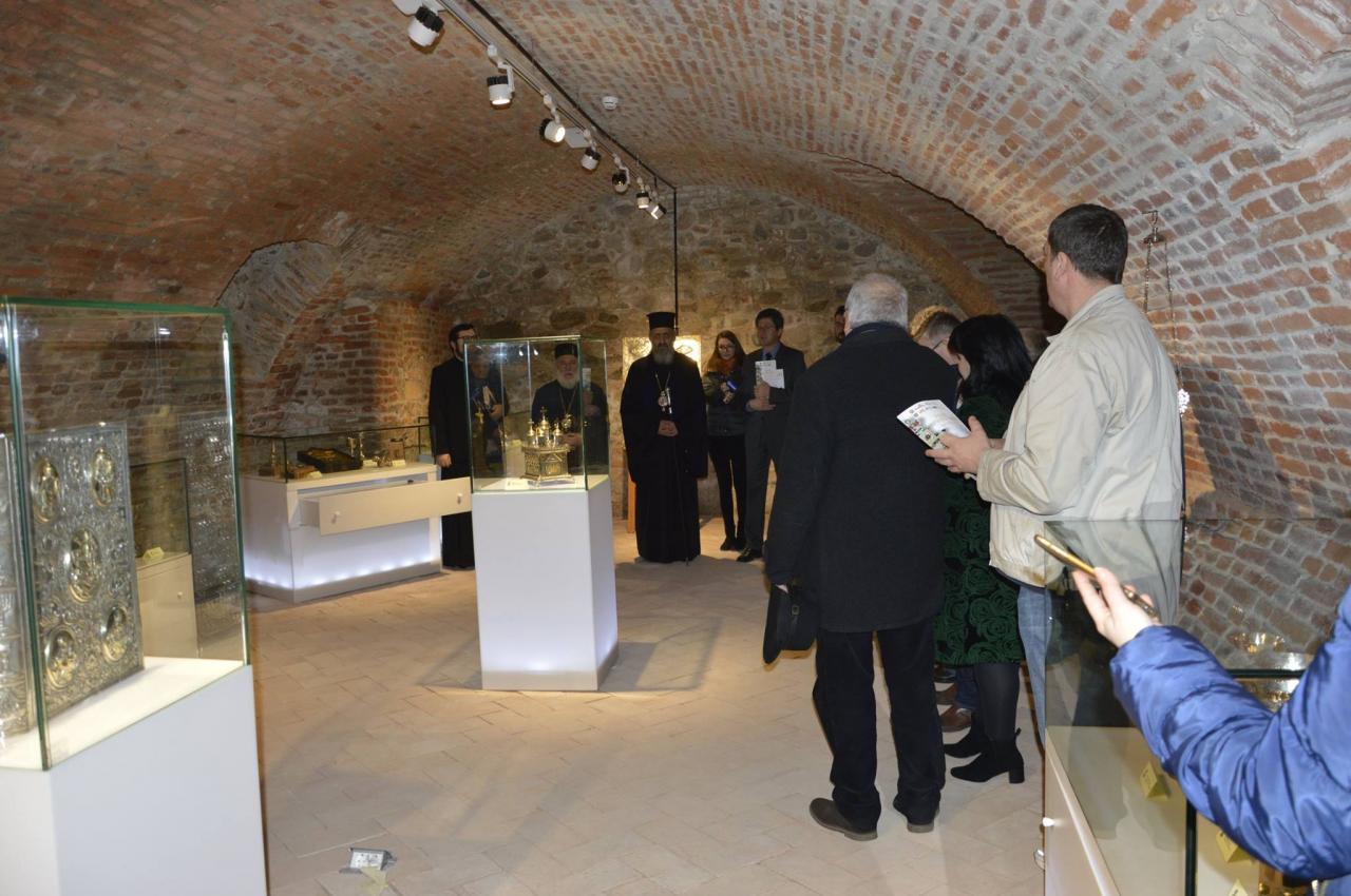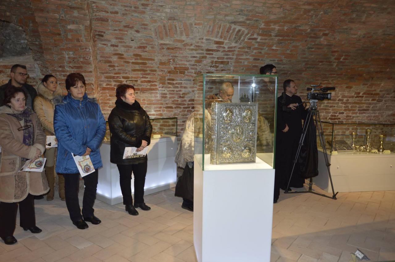 Vineri, 16 februarie, începând cu ora 11:00, la Museikon în Alba Iulia, a avut loc vernisajul expoziției de obiecte sacre „Tezaur – Episcopia Tulcii”, organizată în parteneriat de către Muzeul Național al Unirii din Alba Iulia și Muzeul Național Brukenthal din Sibiu. Evenimentul s-a bucurat de prezența Înaltpreasfințitului Părinte Irineu, Arhiepiscop al Alba Iuliei, în calitate de gazdă, și a Preasfințitului Părinte Visarion, Episcopul Tulcii, în calitate de oaspete al Eparhiei noastre. În deschiderea evenimentului, domnul dr. Gabriel Rustoiu, directorul Muzeului Unirii, urat bun-venit tuturor și a oferit cuvântul Părintelui Arhiepiscop Irineu care a rostit un cuvânt despre importanța patrimoniului sacru pentru afirmarea identității noastre etnice și spirituale. Printre altele, Înaltpreasfințai Sa a spus: „De câte ori mă aflu într-un muzeu bisericesc sau în faţa unei colecţii de artă sacră, mă gândesc cu bucurie la nobleţea poporului nostru care descinde din dacii romanizaţi şi care are o vieţuire neîntreruptă pe pământul vechii Dacii. Acest popor n-a încetat a dăinui chiar în epoca năvălirilor barbare, iubind cu ardoare pe Hristos-Mântuitorul şi spaţiul autohton. Avem multe dovezi arheologice, filologice şi istorice, care ne conving că suntem locuitori stabili pe acest pământ străbun. Într-un mod asemănător, obiectele din patrimoniul nostru creştin (veşminte bisericeşti, vase liturgice, icoane ş.a.) ne arată că noi, românii, suntem creştini din vremuri străvechi. Totodată, suntem creatori şi păstrători de valori spirituale care atestă ingeniozitatea, gustul pentru frumos şi evlavia neamului românesc”. În continuare a luat cuvântul Părintele Episcop Visarion care a subliniat în mesajul său importanța istorică a Eparhiei pe care o păstorește: „Străveche provincie românească, Dobrogea a cunoscut de-a lungul istoriei o plurivalentă culturală brăzdată de influențe ale civilizațiilor greacă, romană, bizantină, otomană și română. Păstrătoare a unui bogat, variat și scump tezaur spiritual, Episcopia Tulcii, așezată în nordul Dobrogei pe locul unor vechi scaune episcopale,are bucuria de a prezenta o parte din valorosul ei patrimoniu de obiecte ce cult iubitorilor de frumos, de migală și de spiritualitate ortodoxă și românească. Aceste artefacte care probează în timp credința, speranța și dragostea făuritorilor, dar și a donatorilor lor, constituie astăzi un reper cultural și artistic ce se cere apreciat la justa lui valoare , dar și un imbold pentru contemporani în prețuirea trecutului și valorificarea lui pentru prezent ca și pentru viitor”. Mai departe au luat cuvântul dr. Ana Dumitran, muzeograf coordonator al Museikon, și domnul dr. Alexandru Chituță, muzeograf în cadrul Muzeului Brukenthal, care au făcut câteva aprecieri de ordin istoric și artistic pe marginea obiectelor prezentate în expoziție. Cuvântul de salut și de felicitare din partea oficialităților județene a fost transmis de către domnul Dumitru Fulea, vicepreședintele Consiliului Județean Alba. Această expoziție aduce în fața publicului vizitator un remarcabil fond de obiecte bisericești reprezentative pentru trei secole (XVIII, XIX, XX), dar și pentru aria culturală și confesională a Dobrogei de Nord. Acest spațiu milenar unde se găsesc cetăți getice, romane și bizantine, un amestec de civilizații într-o sinteză unică, în care trăsături culturale occidentale conviețuiesc cu cele balcanice și orientale.