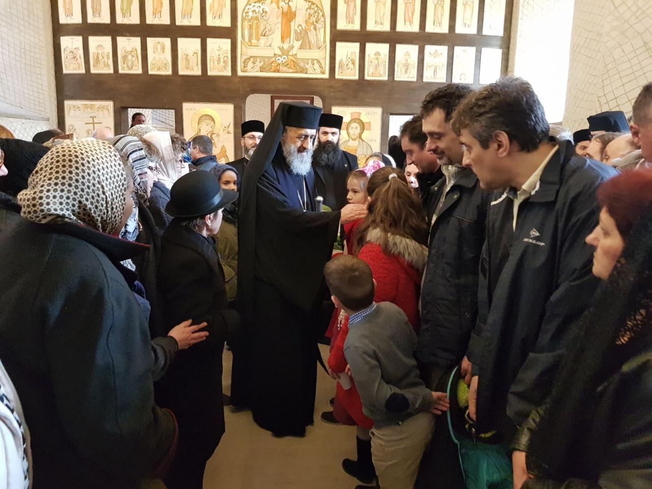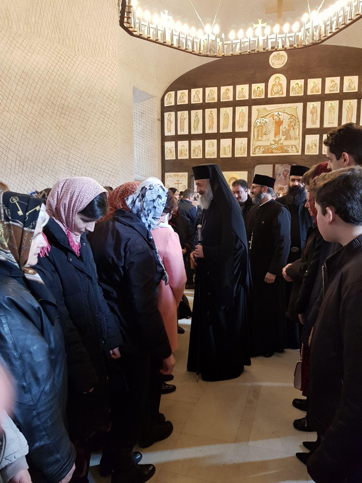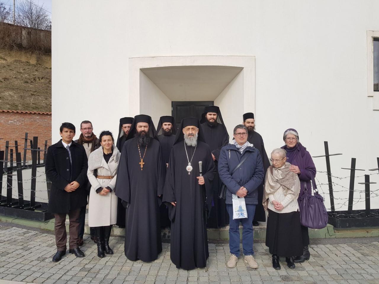 În a doua zi a Simpozionului de Studii Martirologice, în Duminica a treia din Postul Mare (a Sfintei Cruci), invitații au luat parte la Sfânta și Dumnezeiasca Liturghie a Sfântului Vasile cel Mare, oficiată de către Înaltpreasfințitul Părinte Irineu, Arhiepiscop al Alba Iuliei, în biserica Schitului Înălțarea Sfintei Cruci” de la Aiud. Obștea monahală de aici se află sub oblăduirea Precuviosului Părinte Protos. Gavriil Vărvăruc, Exarh al Mănăstirilor și Schiturilor din Eparhia noastră. În cadrul slujbei, diaconul Mihai Ursu a fost hirotonit preot pe seama parohiei Tăuți, protopopiatul Alba Iulia. În omilia pe care a rostit-o în această Duminică, Ierarhul nostru a subliniat importanța jertfei și a mărturisirii în viața Bisericii: „În această epocă în care se fuge de cruce, căutându-se confortul, succesul ușor și distracția, noi, creștinii, avem chemarea să-L urmăm pe Iisus Cel Răstignit. Această urmare înseamnă a suferi și, poate, chiar a fi persecutat și a muri pentru El. Așa s-a întâmplat cu mulți români buni și credincioși, închiși și torturați în sinistra temniță a Aiudului. Domnul nostru, Care a fost batjocorit, chinuit și ucis, a spus tuturor: «Cine nu-și ia crucea lui și nu-Mi urmează Mie, nu este vrednic de Mine» (Mt. 10, 38). După cum Hristos este în stare de jertfă până la sfârșitul lumii, creștinul nu poate fi în această lume decât răstignit. Deținuții închisorilor comuniste au făcut din viața lor o dovadă vie a faptului că jertfa este singura cale spre Înviere”. La final, Părintele Arhiepiscop Irineu a adresat câteva cuvinte participanților la Simpozionul de Studii Martirologice, subliniind importanța cinstirii celor care au suferit în temnițele comuniste și încurajând eforturile de cercetare și documentare pentru relevarea chipurilor luminoase ale mărturisitorilor din perioada comunismului.