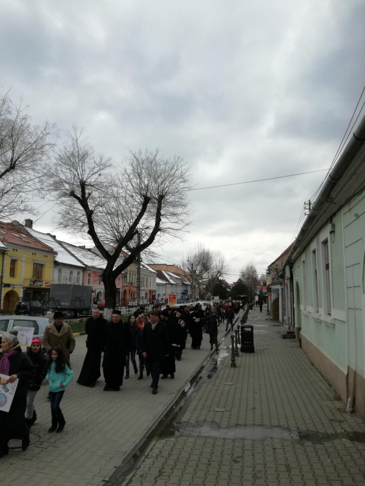 Sâmbătă, 24 martie a.c., sub egida „O lume pentru viațăˮ, cu binecuvântarea Înaltpreasfințitului Părinte Irineu, Arhiepiscop al Alba Iuliei, la Sebeș a avut loc acțiunea civică „Marșul pentru viață - 2018”. Începând cu ora 14:30, zeci de persoane aparțind diferitelor culte din zona Sebeșului, la invitația Protopopiatului Ortodox Român Sebeș, s-au întâlnit pentru a susține viața în Parcul Primăriei din localitate. Moderatorul întâlnirii a fost părintele protopop Ionel Arsu care, după rostirea unei rugăciuni și citirea mesajului adresat participanților de către Înaltpreasfințitul Părinte Irineu, a dat cuvântul domnului primar Dorin Nistor, părintelui Dacian Gane, paroh al comunității ortodoxe din Lancrăm, și pastorului Victor Șuteu de la biserica penticostală din Petrești pentru a transmite câteva gânduri legate de tema acțiunii. A urmat premierea elevilor câștigători ai concursului de eseuri cu tema „O lume pentru viațăˮ și, poate cel mai emoționant moment al zilei, intonarea celor două imnuri „Pro-vita” de către elevi ai școlilor din municipiu. Evenimentul s-a încheiat cu Marșul propriu-zis pe traseul: Parcul Primăriei - Bulevardul „Lucian Blagaˮ - Centrul Cultural „Lucian Blagaˮ - Troița de pe strada Călărași, unde au fost depuse lumânări și s-a rostit rugăciunea de încheiere. Sperăm că mesajul de protejare a vieții în cadrul familiei tradiționale prin nașterea de copii, precum și sprijinirea mamei în perioada sarcinii, a trezit și a format conștiința celor care ezită în asumarea și promovarea dreptului la viață.