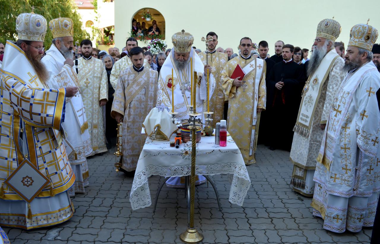După slujba de târnosire a Sfântului Altar al noii biserici, Părintele Mitropolit Laurențiu a rostit un cuvânt de învățătură despre semnificațiile teologice și duhovnicești ale slujbei săvârșite cu acest prilej binecuvântat. Înaltpreasfinția Sa a explicat credincioșilor textele biblice din cadrul slujbei și insemnătatea ritualului oficiat. În continuare soborul de arhierei, înconjurat de numeroși preoți și diaconi, s-a îndreptat spre altarul de vară al Mănăstirii, unde a fost celebrată Sfânta și Dumnezeiasca Liturghie. După citirea Evamgheliei, Părintele Arhiepiscop Varsanufie a ținut o omilie în care a tâlcuit mesajul pericopei evanghelice referitoare la orbirea trupească și sufletească, arătând multiple modalități de sfințire a vieții noastre și de întărire în credința dreptmăritoare.