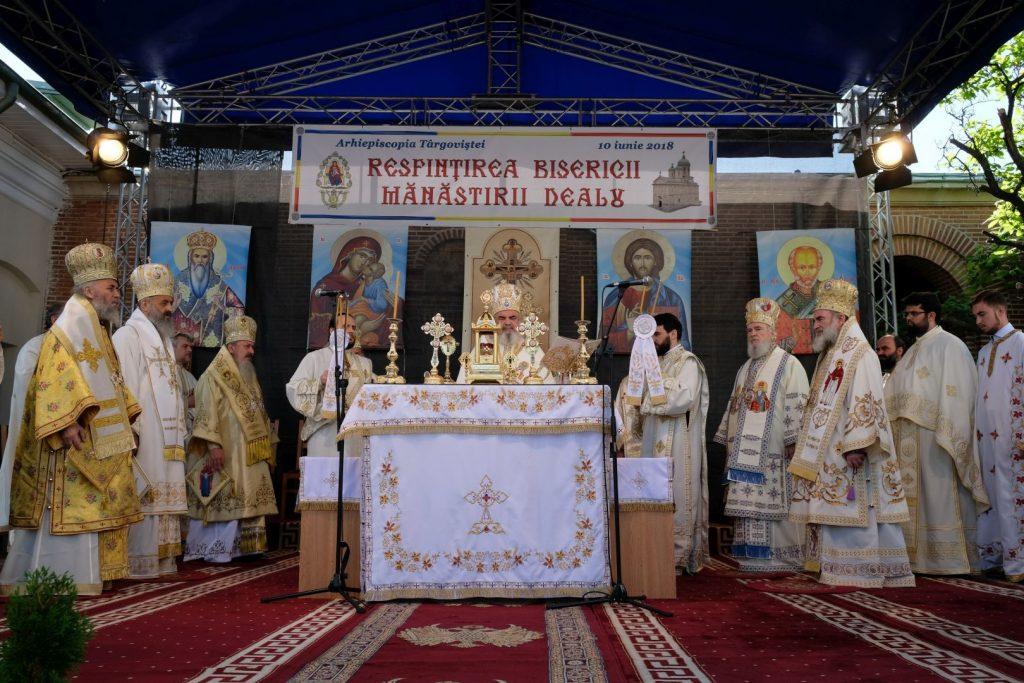 După 517 ani de la construirea ei, Patriarhul României a resfinţit duminică biserica Mănăstirii Dealu pe care a numit-o „un reper important al identităţii şi unităţii noastre naţionale”. Preafericitul Părinte Patriarh Daniel şi-a argumentat cuvintele explicând că aşezământul monahal constituie „locul sacru care păstrează ca într-un chivot cinstitul cap al domnitorului Mihai Viteazul, cel care a înfăptuit prima unire a provinciilor româneşti: Ţara Românească, Transilvania şi Moldova în anul 1600”. Deşi această unire „a fost o clipă scurtă a istoriei, o străfulgerare printre nori grei şi apăsători, ea a încărcat sufletul românilor de o speranţă fără seamăn, cu o valoare mare de simbol” a subliniat Preafericirea Sa.