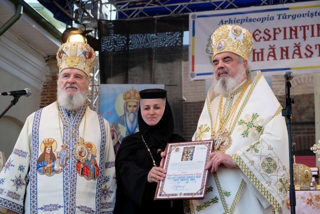 La finalul slujbei, Preafericitul Părinte Patriarh Daniel a conferit maicii stareţe Emanuela Preda „Ordinul Sfinţii Împăraţi Constantin şi Elena”, iar Mitropolitului Nifon i-a dăruit o cruce de binecuvântare. Înaltpreasfinţitul Părinte Mitropolit Nifon a oferit Preafericirii Sale o icoană reprezentând pe Maica Domnului.