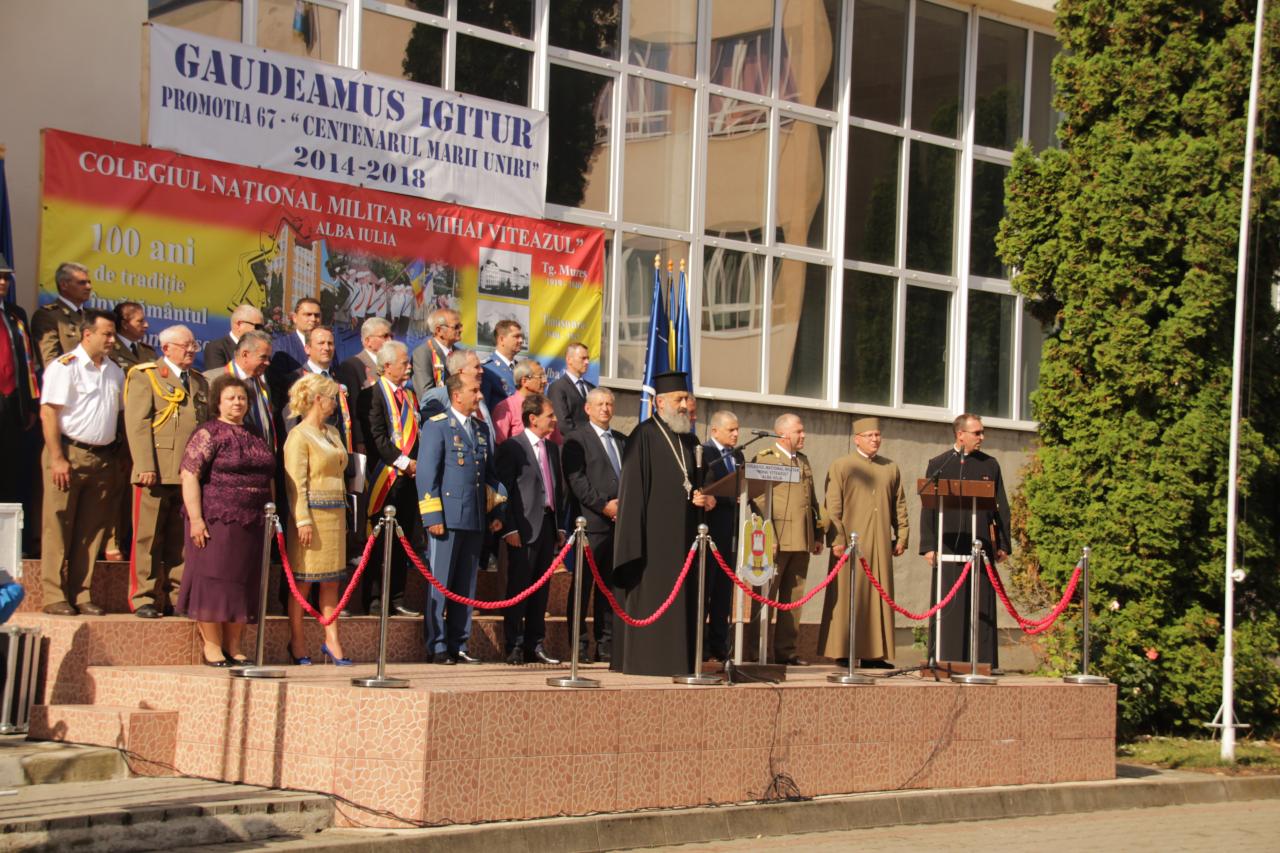 Joi, 14 iunie, Înaltpreasfinţitul Părinte Irineu, Arhiepiscop al Alba Iuliei, a participat la ceremonialul încheierii anului şcolar 2017-2018 de la Colegiul Naţional Militar „Mihai Viteazul” din Alba Iulia. În cadrul evenimentului au avut loc mai multe momente specifice: au fost premiaţi cei mai silitori elevi, s-a dat citire ordinului de numire a noului elev plutonier adjutant și a avut loc momentul simbolic al predării cheii generaţiilor următoare. De asemena, a fost dezvelit tabloul promoţiei cu numărul 67, ce poartă denumirea onorifică „Centenarul Marii Uniri”. La eveniment au participat cadre militare, oficialităţi judeţene şi locale, dar şi numeroşi părinţi ai elevilor militari.