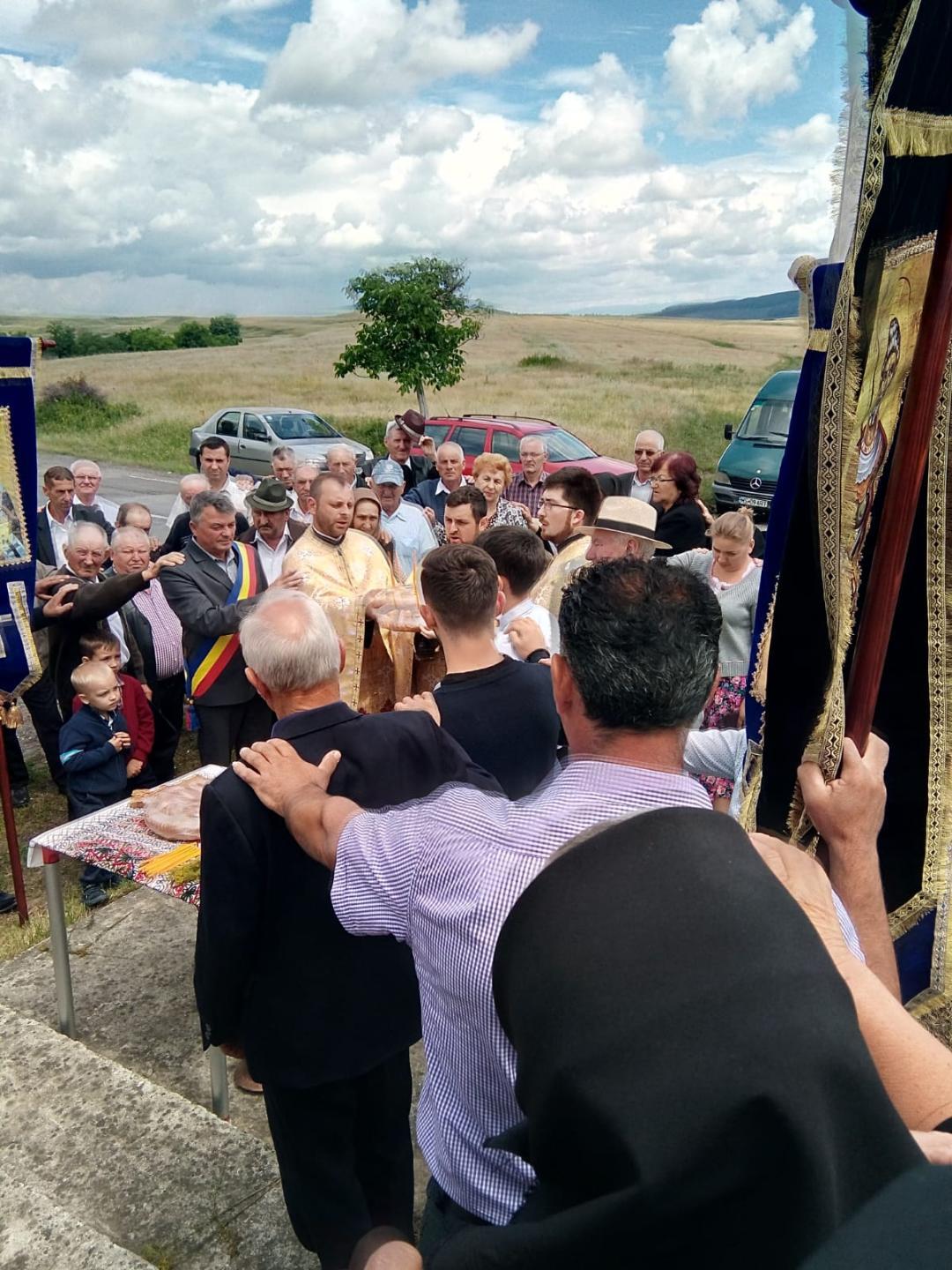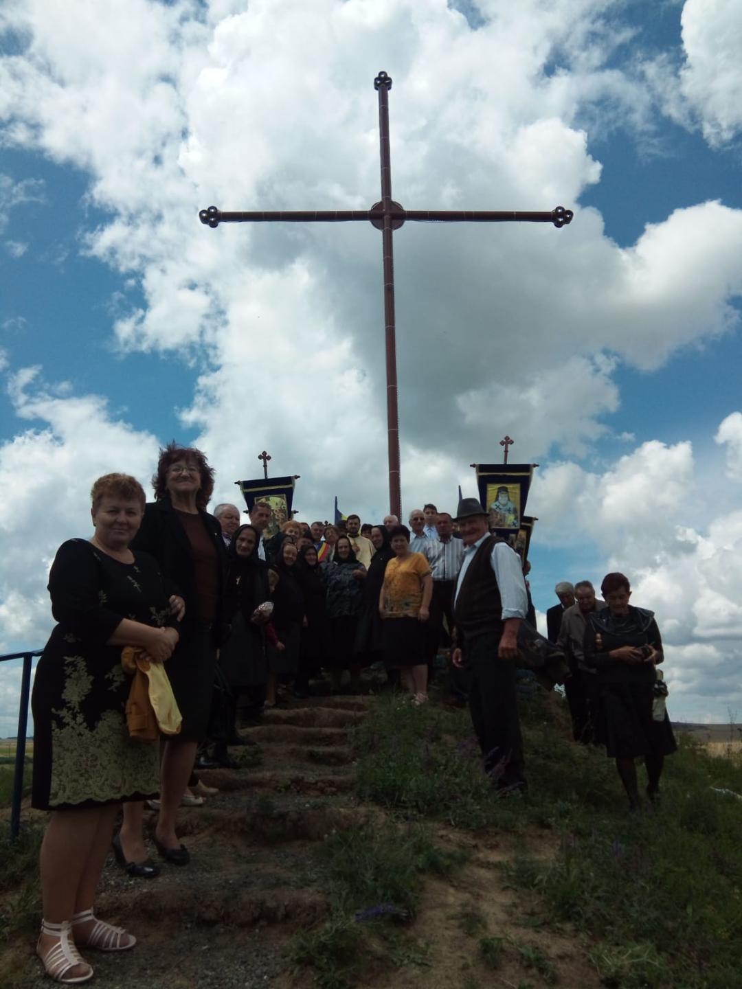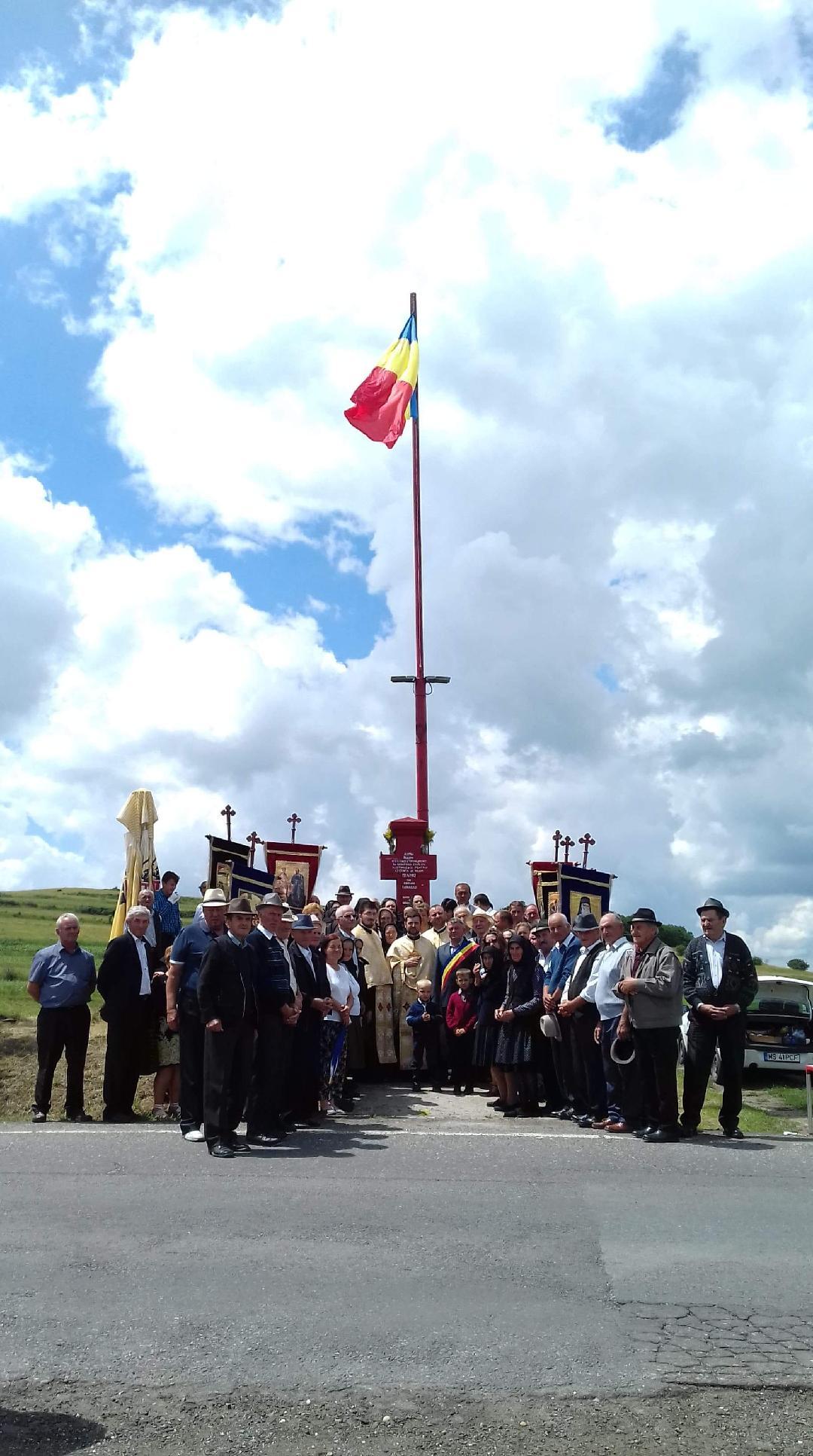Apoi mulțimea de credincioși în frunte cu preoții, au pornit spre un alt obiectiv, o cruce impunătoare, iluminată pe timp de noapte, care veghează asupra văzduhului hotarelor satului, fiind vizibilă de la câțiva kilometri, unde a fost oficiată slujba de sfințire.