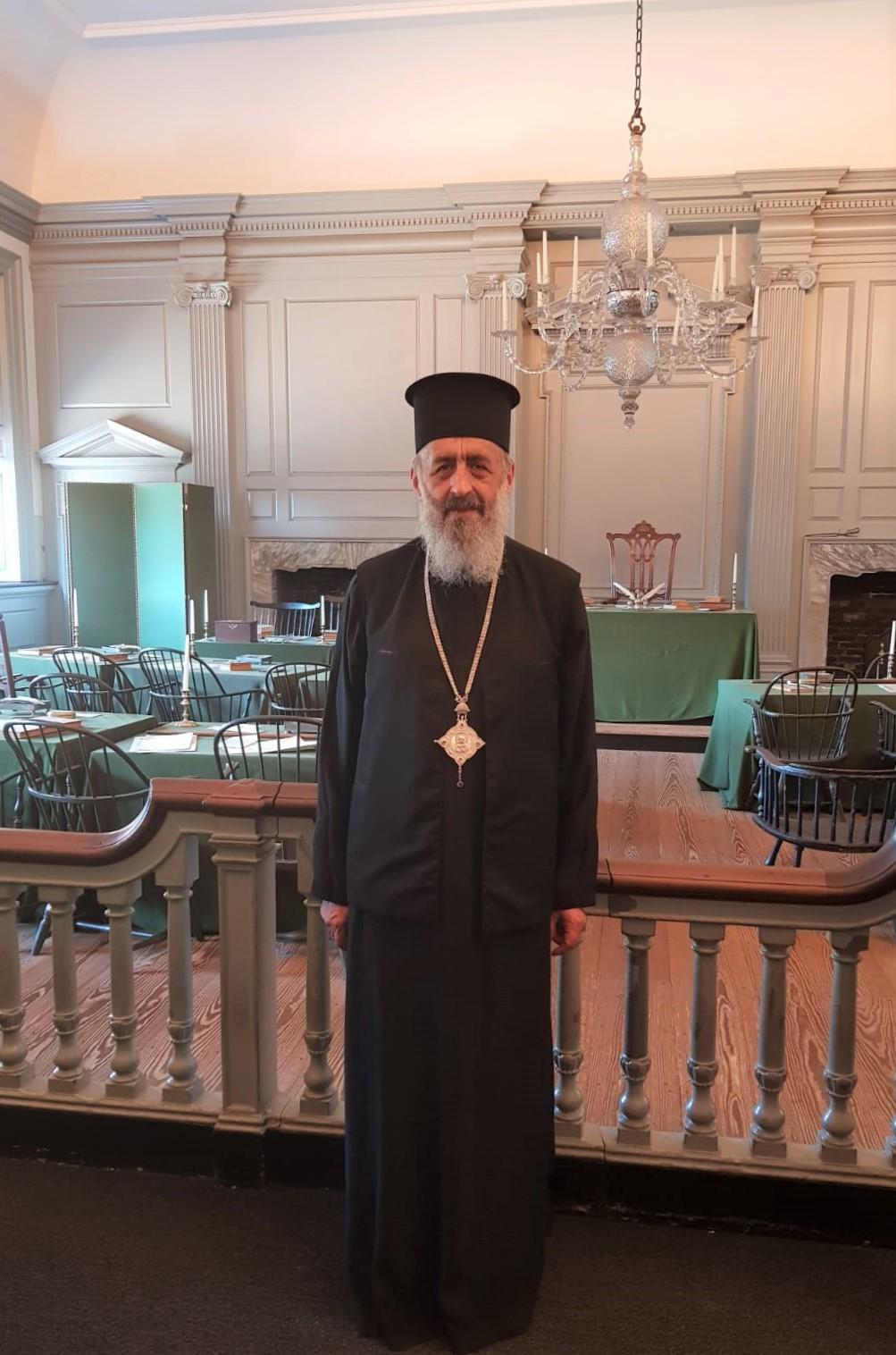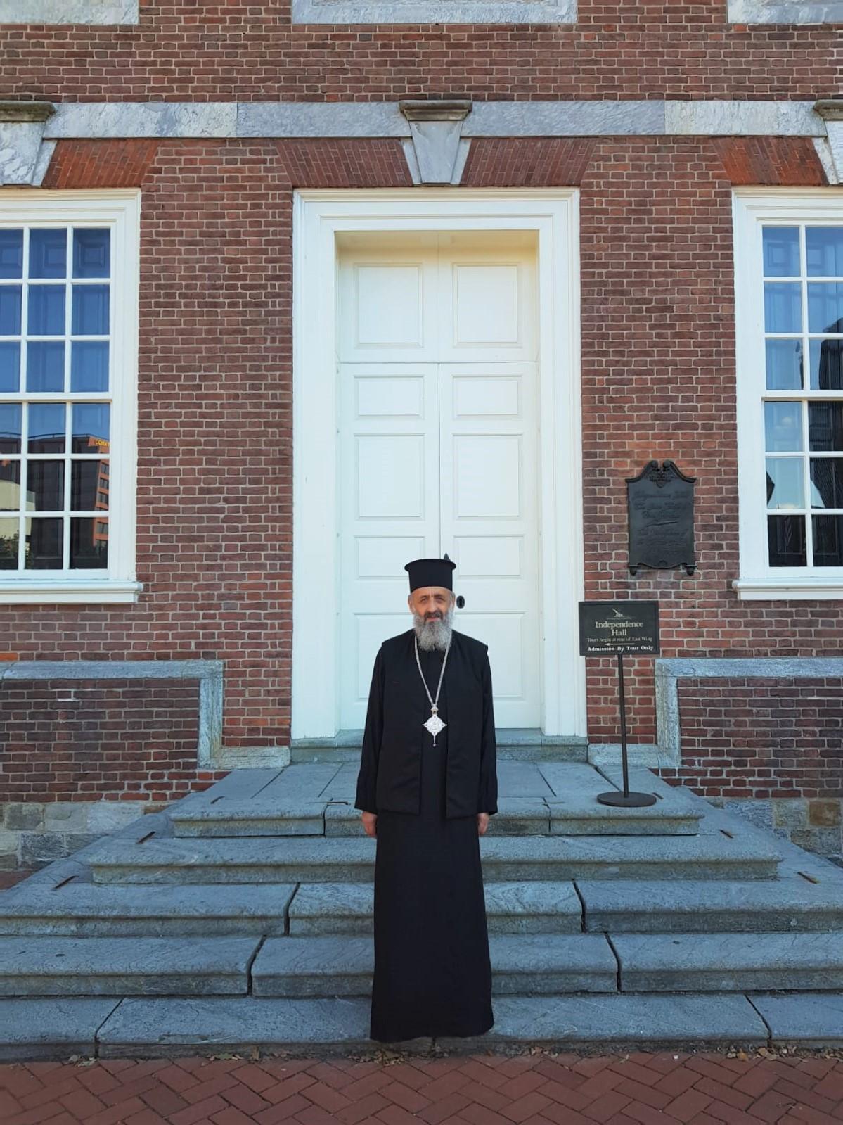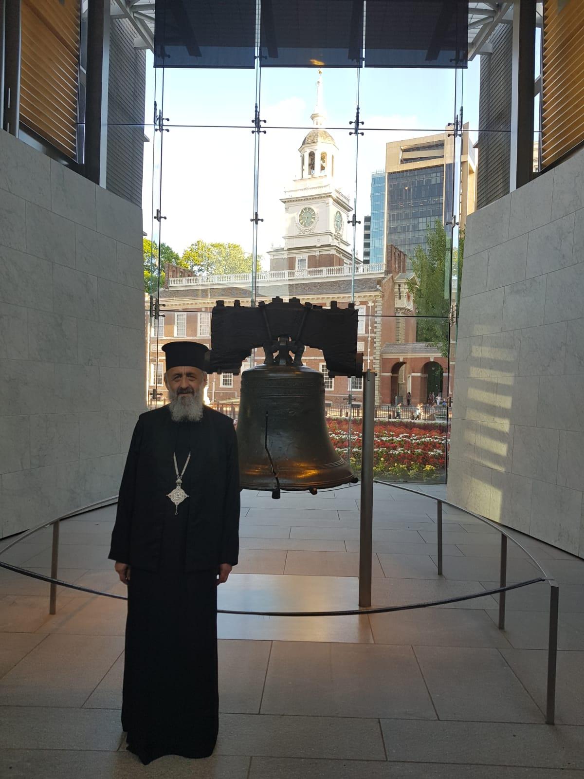 În continuare, în aceeași frumoasă zi, Arhipăstorul Alba Iuliei a vizitat Sala Independenței din Philadelphia, locul unde a fost elaborată și citită Declarația de Independență și locul în care a fost scrisă Constituția Statelor Unite ale Americii. Independence Hall reprezintă un simbol al conștiinței națiunii americane. Așezată în Parcul Național Istoric Philadelphia, clădirea a fost, între anii 1775-1783, sediul Congresului și al Convenției Constituționale. Datorită importanței sale, edificiul a fost trecut în patrimoniul UNESCO. Mai departe, Părintele Arhiepiscop Irineu s-a îndreptat spre un alt simbol de referință al independenței Statelor Unite, care este reprezentat de clopotul libertății, aflat tot în Philadelphia. Despre acest clopot se crede că a fost tras pentru a marca citirea în public a Declarației de Independență, la 8 iulie 1776.