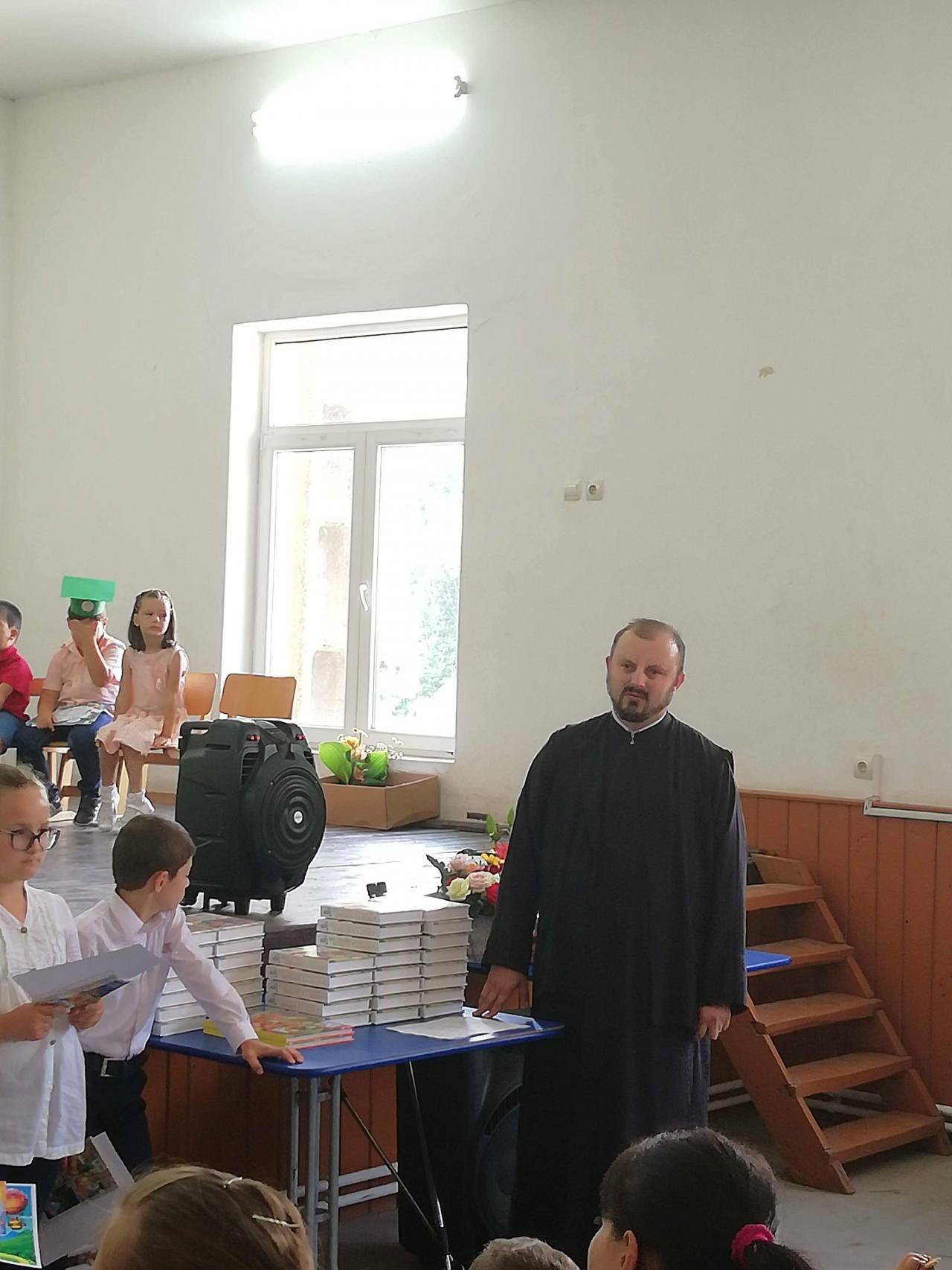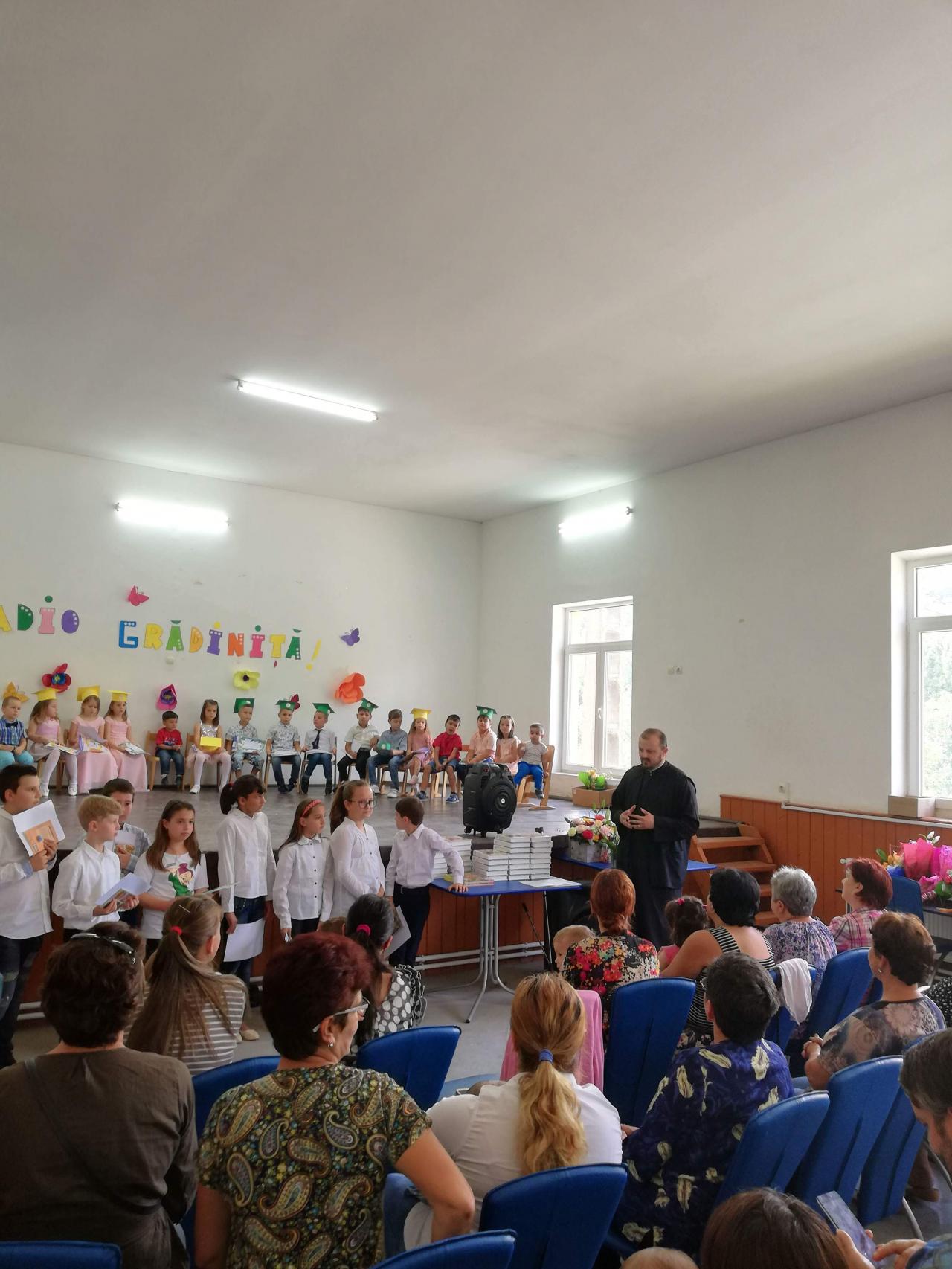Prilejul de mare bucurie pe care-l așteaptă orice copil, după un an ostenitor de școală, este vacanța de vară. Acest sentiment de bucurie a fost nutrit și de copiii școlii gimnaziale și ai grădiniței din Ampoița, la jumătatea lunii iulie, când clopoțelul a sunat vacanța. Însă înainte de a pleca în vacanță elevii și preșcolarii au așteptat cu nerăbdare festivitatea de premiere, în cadrul căreia au fost rasplătiți pentru munca depusă pe parcursul anului școlar, cu diferite premii care au constat în cărți și diplome. La această festivitate am participat și eu în calitate de paroh al Parohiei Ampoița, în baza protocolului de cooperare dintre școala gimnazială a comunei Meteș și parohie. În cadrul acestei festivități am oferit tuturor elevilor și preșcolarilor câte o Biblie ilustrată pentru copii, care au fost sponsorizate de către tânărul enoriaș, Florin Mirel Bădilă, administratorul unei societăți comerciale din Alba Iulia.