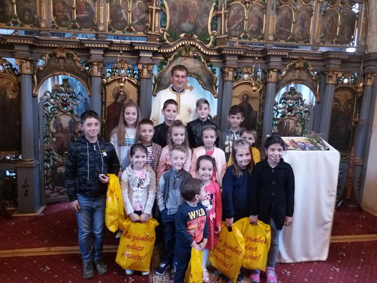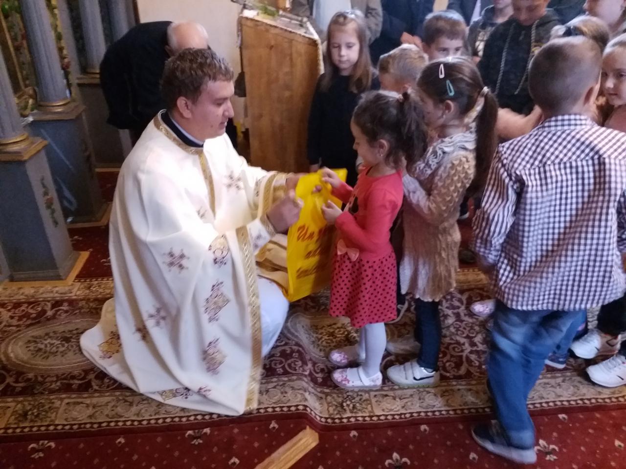 Bucuria tinerilor elevi și preșcolari a fost încununată la finalul Sfintei Liturghii, moment în copiii au primit din partea parohiei caiete speciale de religie, respectiv caiete speciale de lucru, specifice vârstei fiecăruia. De asemenea, pe lângă rechizirele școlare, copiii au primit, în semn de prețuire, și îndrăgitele pachete cu dulciuri.
