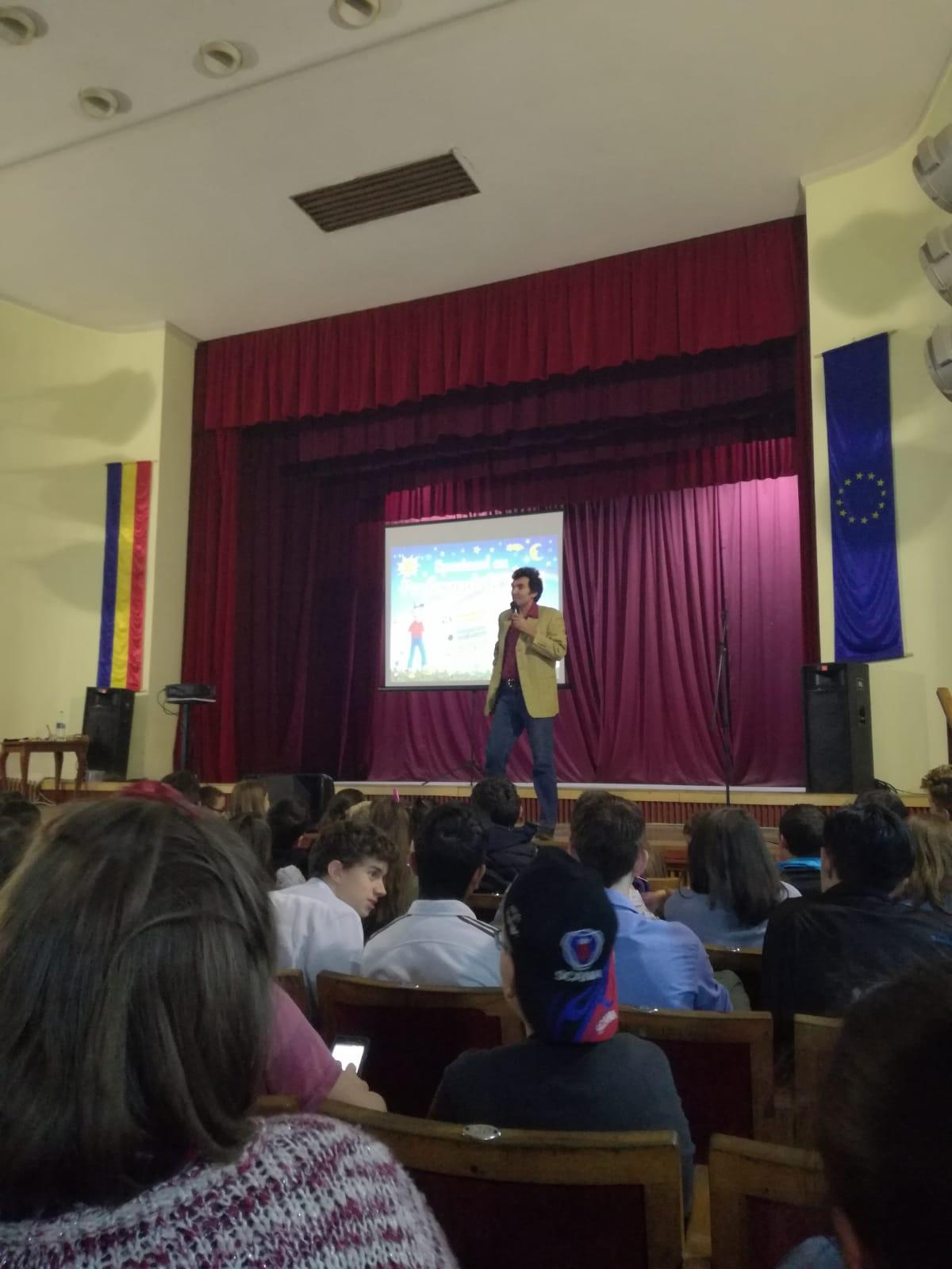 Pe parcursul a două ore, elevii au trăit momente extraordinare, bucurându-se pe parcursul spectacolului de o mare diversitate artistică ce a îmbinat, în mod armonios, prezentarea unor personalități culturale românești cu arta spectaculoasă a umbrelor, cu muzica deosebită, cu scenete interactive și cu experimente distractive. Spectacolul a fost conceput ca un atelier pentru minte și suflet, în care elevii au descoperit cum pot deveni ei înșiși artiști în tainele jocului cu lumini și umbre. Cu ajutorul imaginației, copiii au călătorit pe meleaguri de basm, s-au întâlnit cu personaje fantastice și îndrăgite din literatura românească, toate acestea realizându-se într-un spirit al bucuriei și al bunei dispoziții.