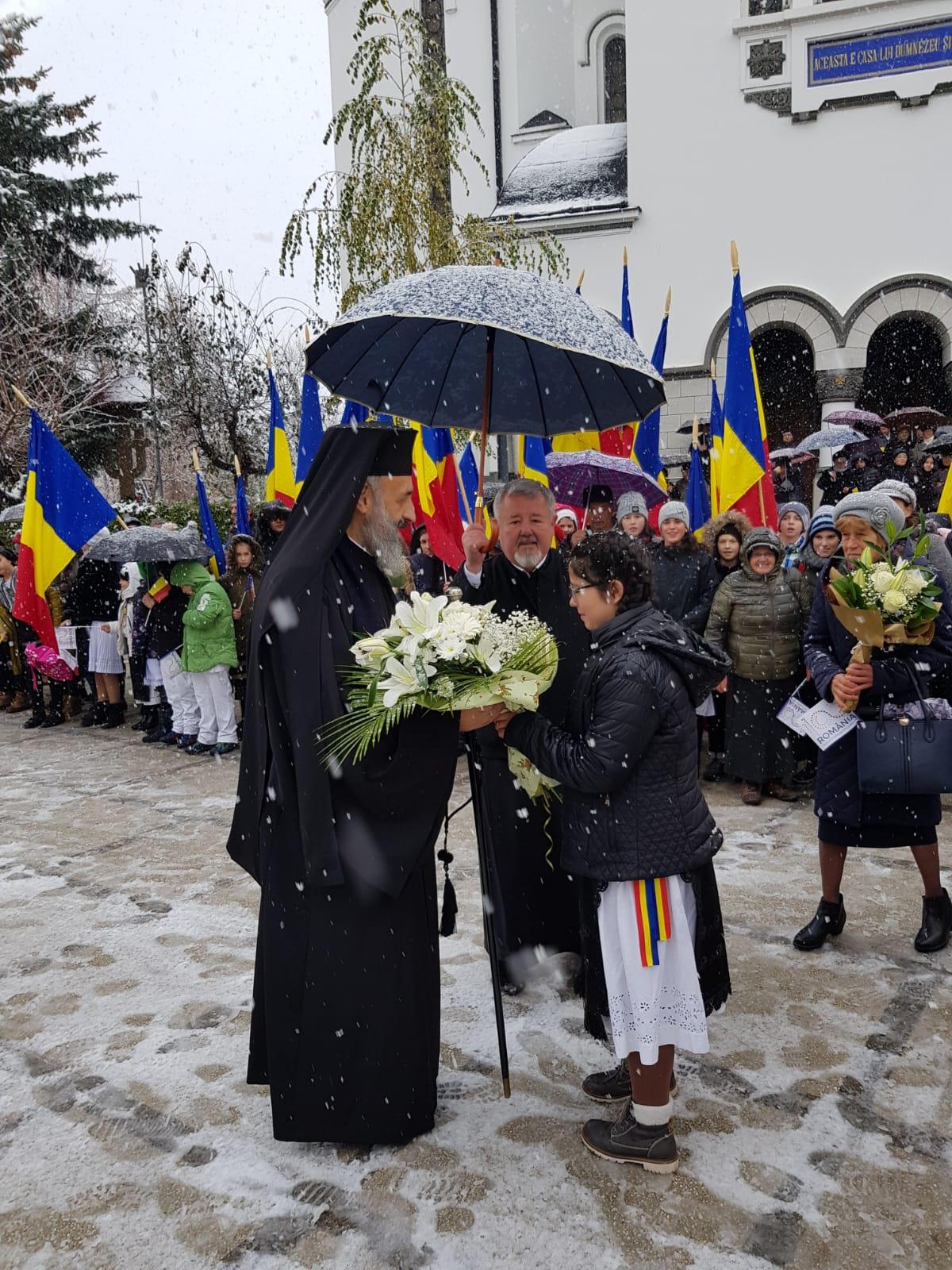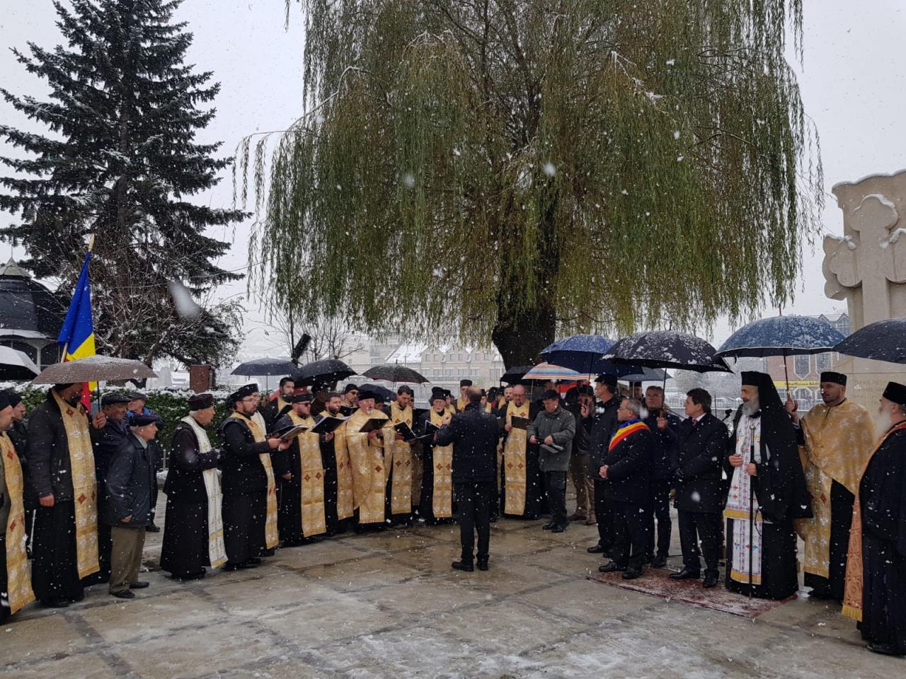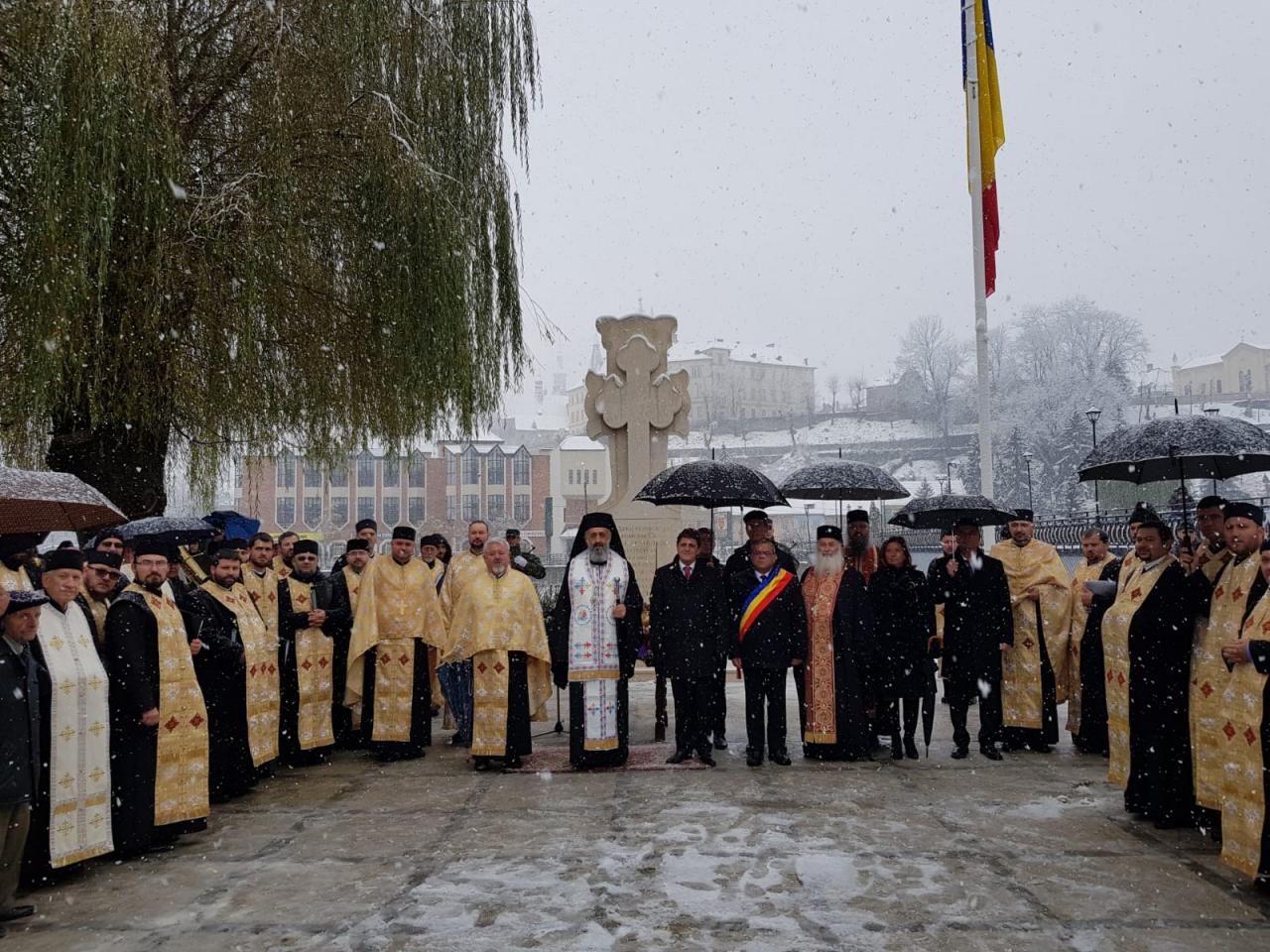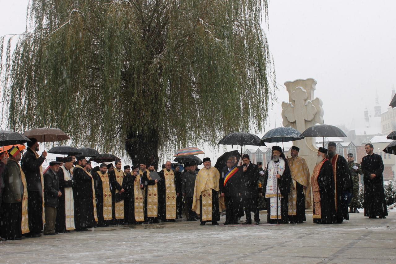 La acest eveniment au luat parte numeroși clerici din municipiu și din împrejurimi, dintre care amintim pe părintele Ovidiu Dan, protopop al Sighișoarei, și pe preacuviosul părinte arhimandrit Ghelasie Țepeș, starețul Mănăstirii „Sfântul Mare Mucenic Dimitrie” din localitate. De asemenea, la acest moment deosebit au luat parte numeroase oficialități, dintre care s-au numărat domnul Mircea Dușa, Prefectul Județului Mureș, domnul Ovidiu Dancu, vicepreședinte al Consiliului Județean Mureș, și domnul Ovidiu-Dumitru Mălăncrăvean, primarul municipiului Sighișoara. La final, Corala „Deus Pro Nobis” a preoților Protopopiatului Sighișoara au susținut un recital de cântece patriotice, în semn de prețuire față de eroii neamului nostru. În continuare, Fanfara municipiului Sighișoara a susținut un scurt recital, după care a avut loc o paradă militară.