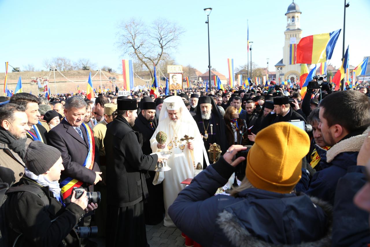 De asemenea, începând cu ora 12.00, Preafericitul Părinte Daniel, Patriarhul Bisericii Ortodoxe Române, a fost prezent, dimpreună cu Părintele Arhiepiscop Irineu și cu numeroși ierarhi, la parada portului popular și la reconstituirea istorică a Marii Adunări Naționale, manifestări desfășurate în Piața Tricolor. La finalul vizitei oficiate la Alba Iulia cu ocazia manifestărilor dedicate Centenarului Marii Uniri, Întâistătătorii celor două Biserici Ortodoxe surori au luat parte, începând cu ora 15.00, la inaugurarea Podului Unirii și a Monumentului Unirii, în prezența domnului Klaus Werner Iohannis, Președintele României, precum și la ceremonia defilării trupelor și tehnicii militare, desfășurată pe Bulevardul „1 Decembrie 1918” din orașul Marii Uniri.