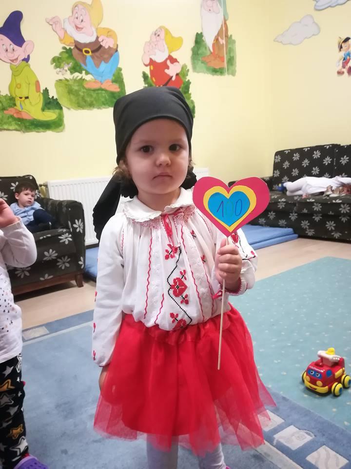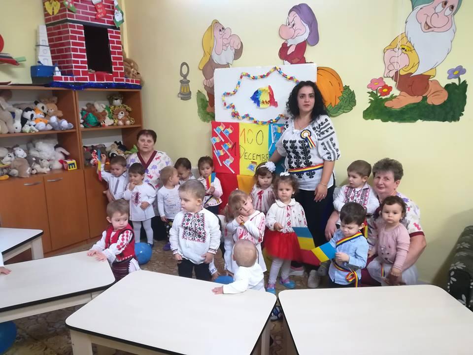 Copiii de la Centrul de zi „Sfânta Irina” din Blaj au sărbătorit Ziua Națională a României și Centenarul Marii Uniri. Îmbrăcaţi în costume populare, micuţii au fost implicați în diferite activități educative şi distractive, iar, cu ajutorul educatoarelor, și-au însușit câteva cunoștințe despre semnificația zilei de 1 Decembrie şi au pregătit diverse materiale reprezentative. De asemenea, copiii au confecționat din carton colorat câte un steguleț în formă de inimioară pe care a fost inscripționat numărul „100”, dar și o ghirlandă colorată în culorile tricolorului, reprezentând harta României. La finalul activităţilor, copiii şi-au dat mânuţele şi au format împreună Hora Unirii.
