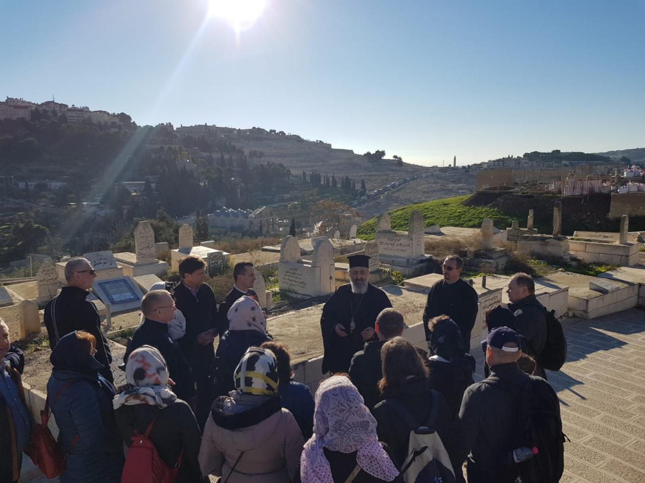 Vineri, 14 decembrie a.c., în a patra zi a pelerinajului efectuat în Țara Sfântă, Înaltpreasfințitul Părinte Irineu, Arhiepiscop al Alba Iuliei, s-a aflat, dimpreună cu grupul de pelerini din Eparhia noastră, în Cetatea Ierusalimului. Astfel, pe parcursul întregii zile, credincioșii pelerini au străbătut, în frunte cu Ierarhul nostru, „Drumul Crucii” („Via Dolorosa”), parcurs care a fost încununat cu venerarea Sfântului Mormânt, locul îngropării Mântuitorului nostru Iisus Hristos. Cu prilejul vizitării acestui oraș străvechi, Părintele Arhiepiscop Irineu, adresându-se credincioșilor prezenți, a reliefat importanța locurilor sfinte din Ierusalim. În cuvântul său, Înaltpreasfinția Sa a amintit de momentele în care Fiul lui Dumnezeu străbătea această Cetate, subliniind, totodată, ultima vizită realizată aici de către Domnul, petrecută cu doar câteva zile înainte de Sfintele Sale Pătimiri.