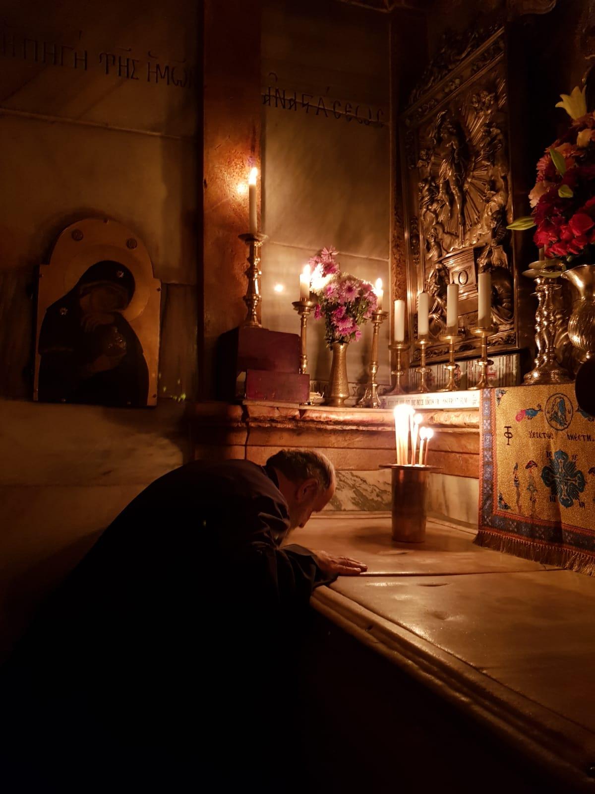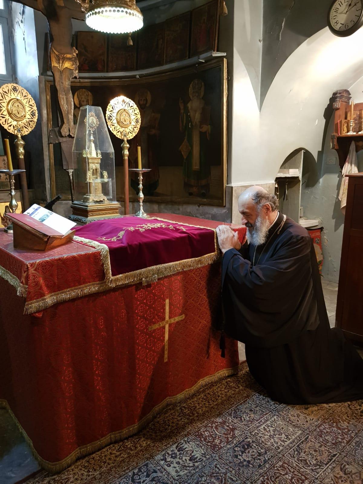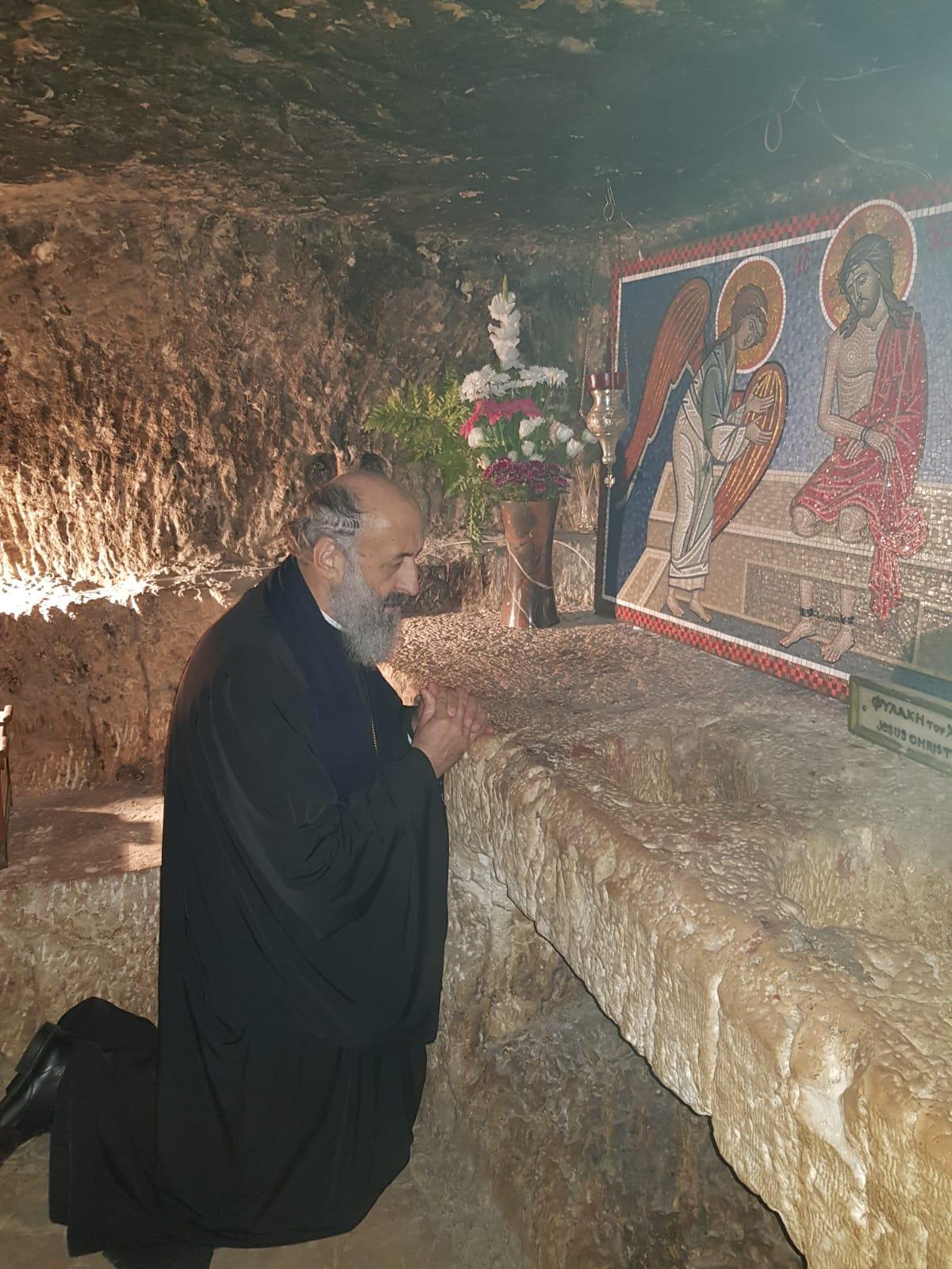 Pelerinajul realizat de către Ierarhul nostru pe „Drumul Crucii” dimpreună cu credincioșii pelerini, început la Poarta Sfântului Ștefan și continuat prin vizitarea fortăreței „Antonia”, a fost încununat cu venerarea Sfântului Mormânt. Cu acest prilej, Întâistătătorul Eparhiei noastre, adresându-se celor de față, a evidențiat faptul că, prin moartea și Învierea Sa, Hristos a abolit sclavia iadului și a morții și a deschis orizontul învierii pentru lumea peregrină prin valea umbrei morții, Mântuitorul fiind pârga celor adormiți. În continuare, Înaltpreasfinția Sa a subliniat faptul că Mormântul Sfânt reprezintă „izvorul învierii noastre”, după cum rostește în taină preotul sau arhiereul în cadrul Sfintei Liturghii.