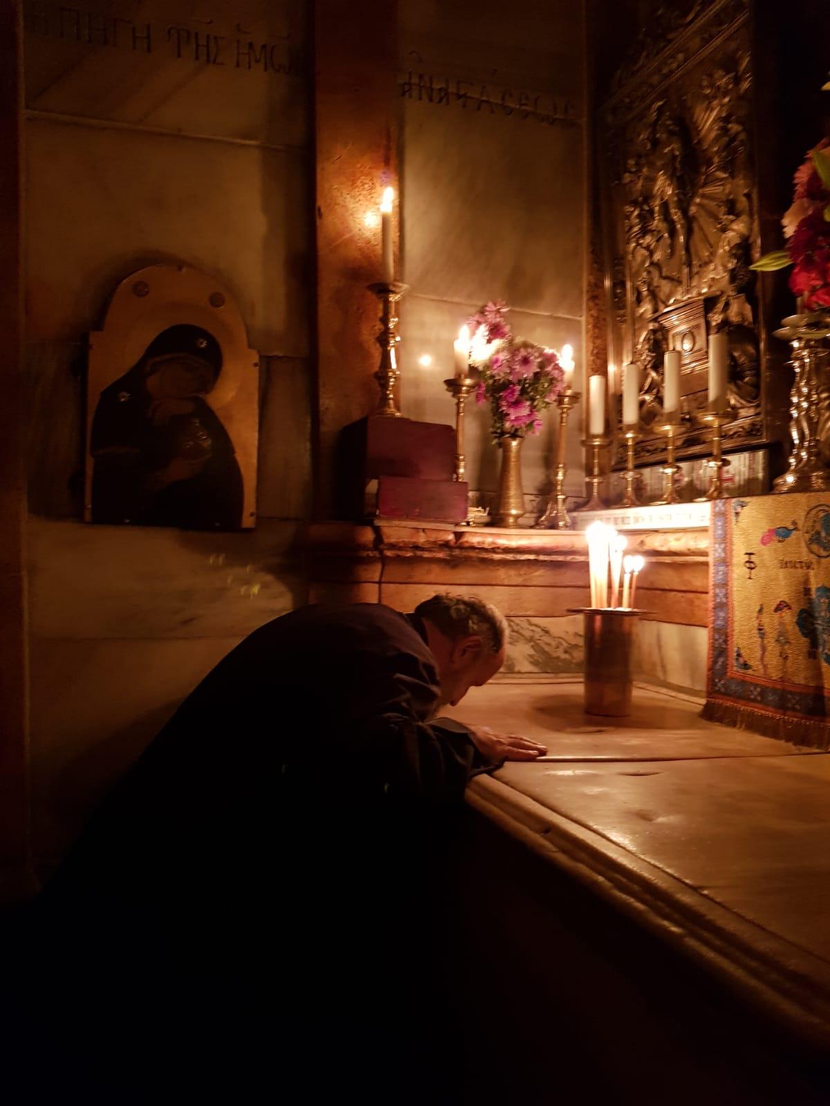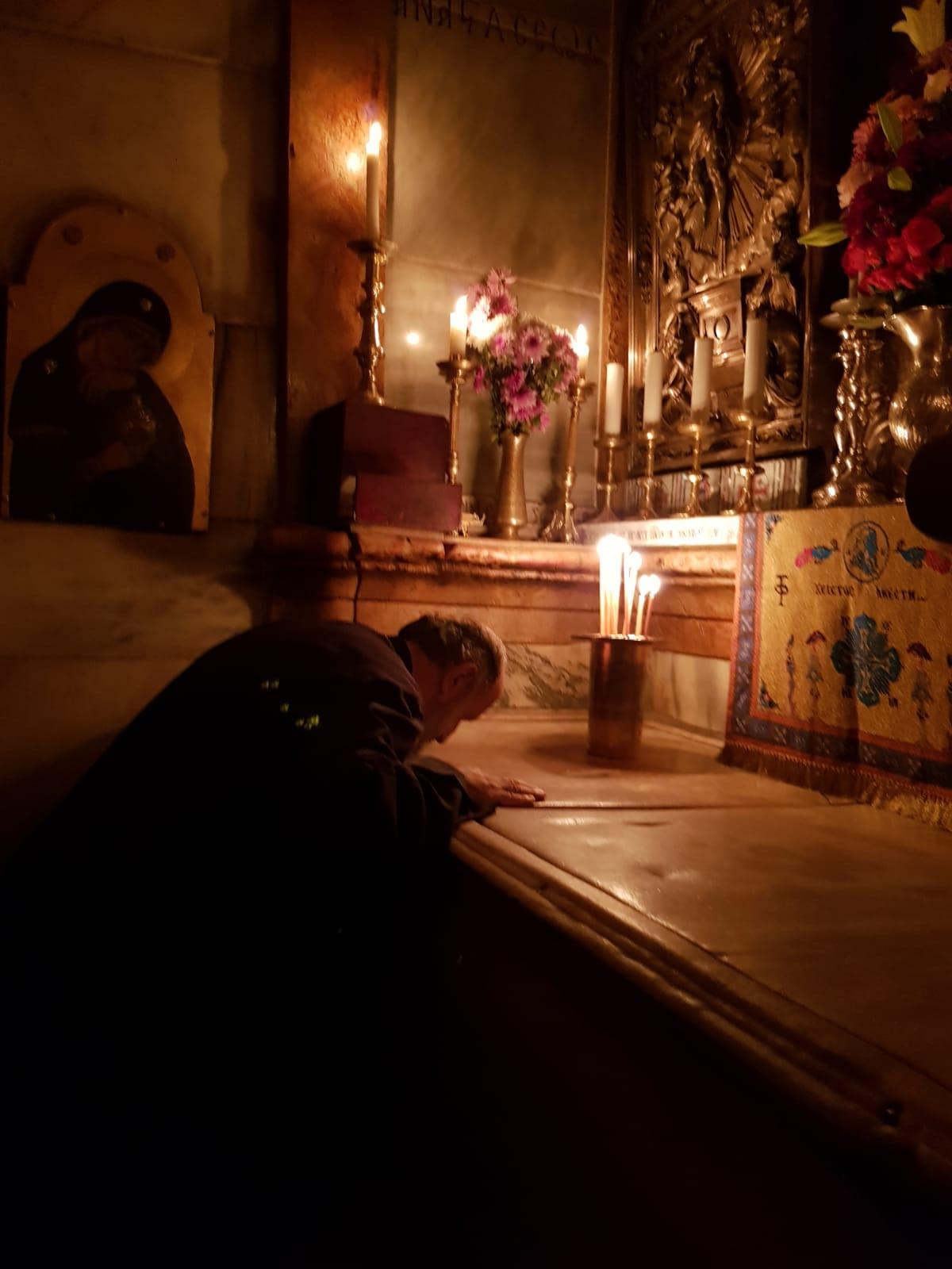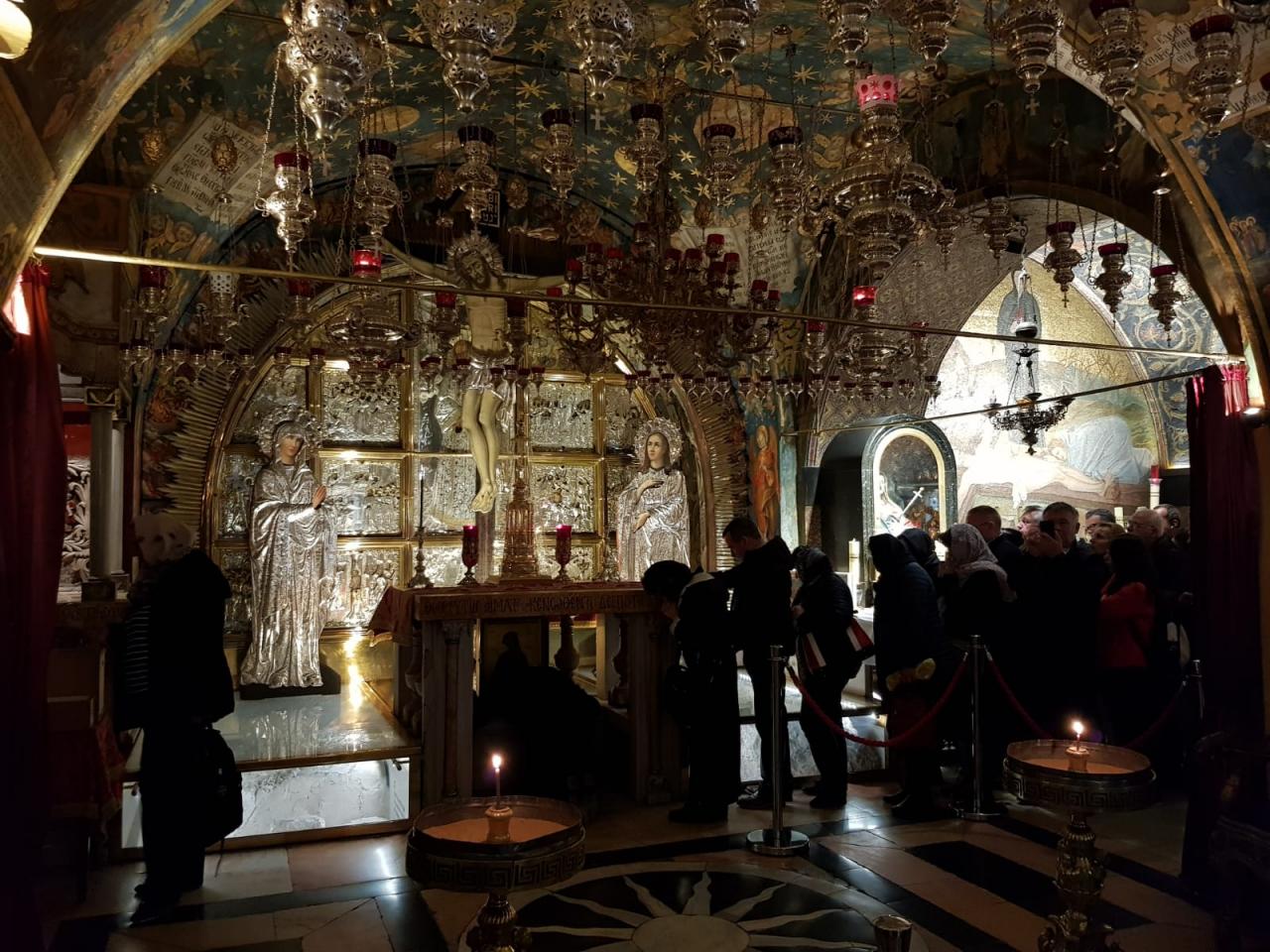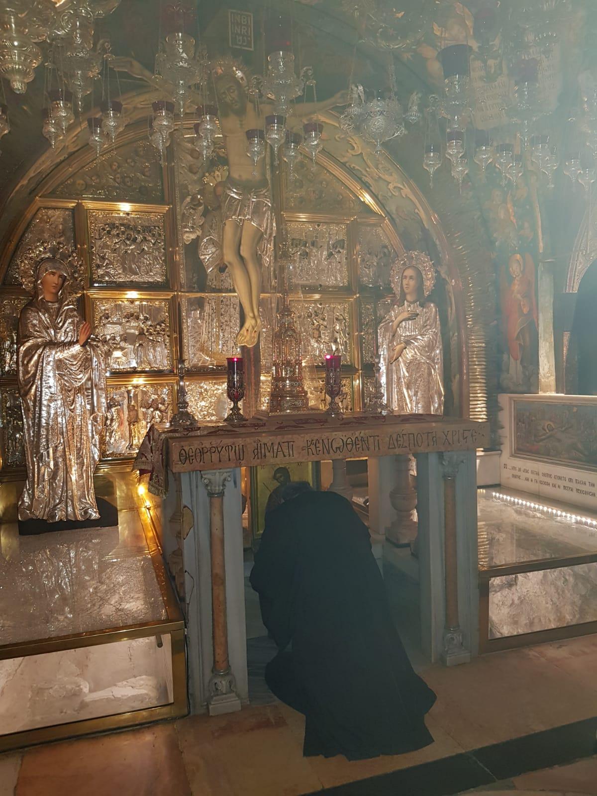 Vorbindu-le celor de față despre „Drumul Crucii” Mântuitorului Hristos, Arhipăstorul nostru a amintit de umilințele îndurate pentru mântuirea noastră de către Domnul Hristos, Stăpânul lumii, începând de la ieslea Betleemului și până la mormânt. Străbătând cu multă emoție și evlavie sfântă „Via Dolorosa”, grupul de clerici și credincioși din Eparhia noastră au avut privilegiul de a păși pe locurile unde Mântuitorul Hristos a purtat pe umerii Săi, în urmă cu 20 de veacuri, Crucea suferinței, reprezentând povara păcatelor întregii lumi. Pelerinii s-au închinat și în paraclisul edificat pe locul Golgotei, unde a fost înfiptă crucea pe care a fost răstignit Domnul Hristos.