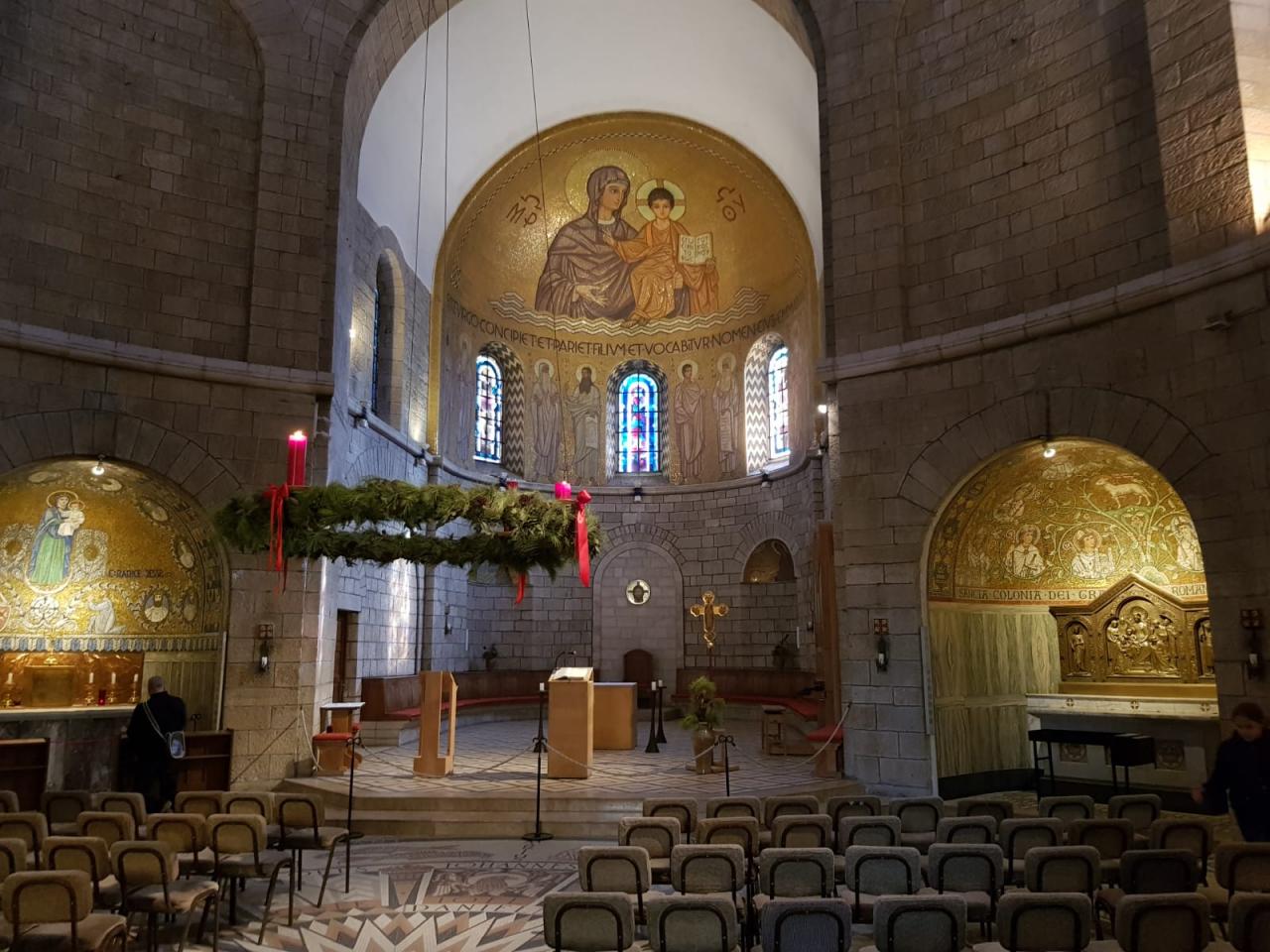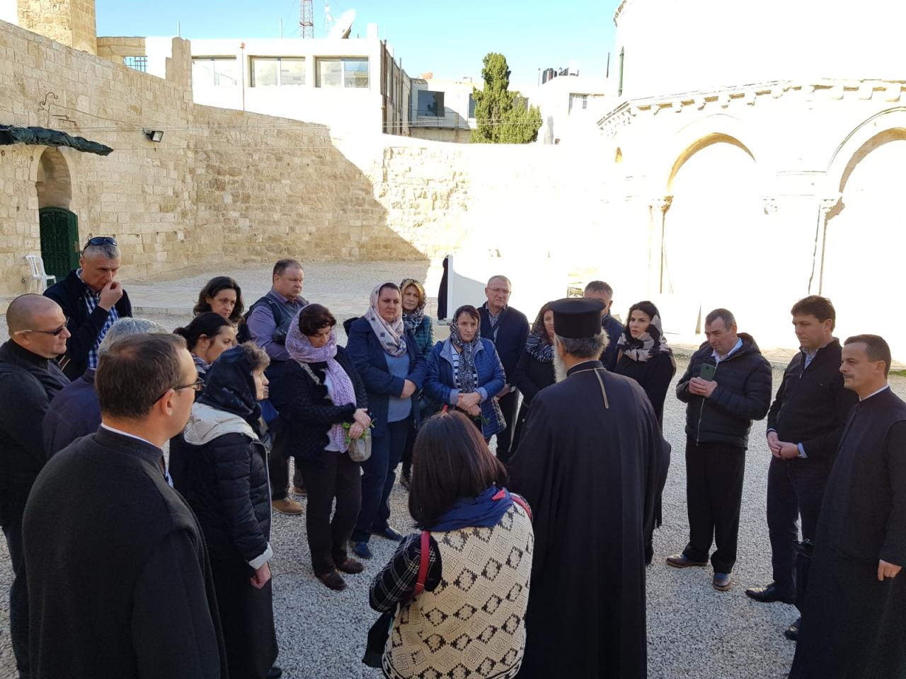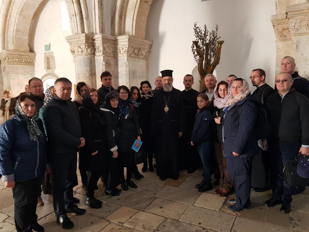 Aflați în cea de-a cincea zi a pelerinajului în Țara Sfântă, grupul de clerici și credincioși din Eparhia noastră, în frunte cu Înaltpreasfințitul Părinte Arhiepiscop Irineu, a continuat itinerariul desfășurat la Locurile Sfinte. Astfel, sâmbătă, 15 decembrie a.c., pelerinii au urcat, încă de la primele ore ale dimineții, pe colina Sionului, situată în sud-vestul Ierusalimului. Acest loc a fost numit „leagăn de aur al creștinătății”, iar psalmistul David îl supranumea „muntele cel sfânt”. Aici, Mântuitorul a instituit, la Cina cea de Taină, Sfânta Euharistie, iar, tot în acest loc, Domnul Hristos avea să Se arate, după Învierea din morți, Apostolilor Săi, instituind Taina Preoției. De asemenea, tot aici, Fiul lui Dumnezeu a trimis, la 10 zile după Înălțarea Sa la cer, pe Duhul Sfânt, scăldând Sionul în efluvii de energii dumnezeiești. În urma acestui eveniment minunat, a luat ființă Biserica în mod văzut, organism teandric ce reprezintă Trupul lui Hristos, corabia mântuirii și laboratorul învierii.