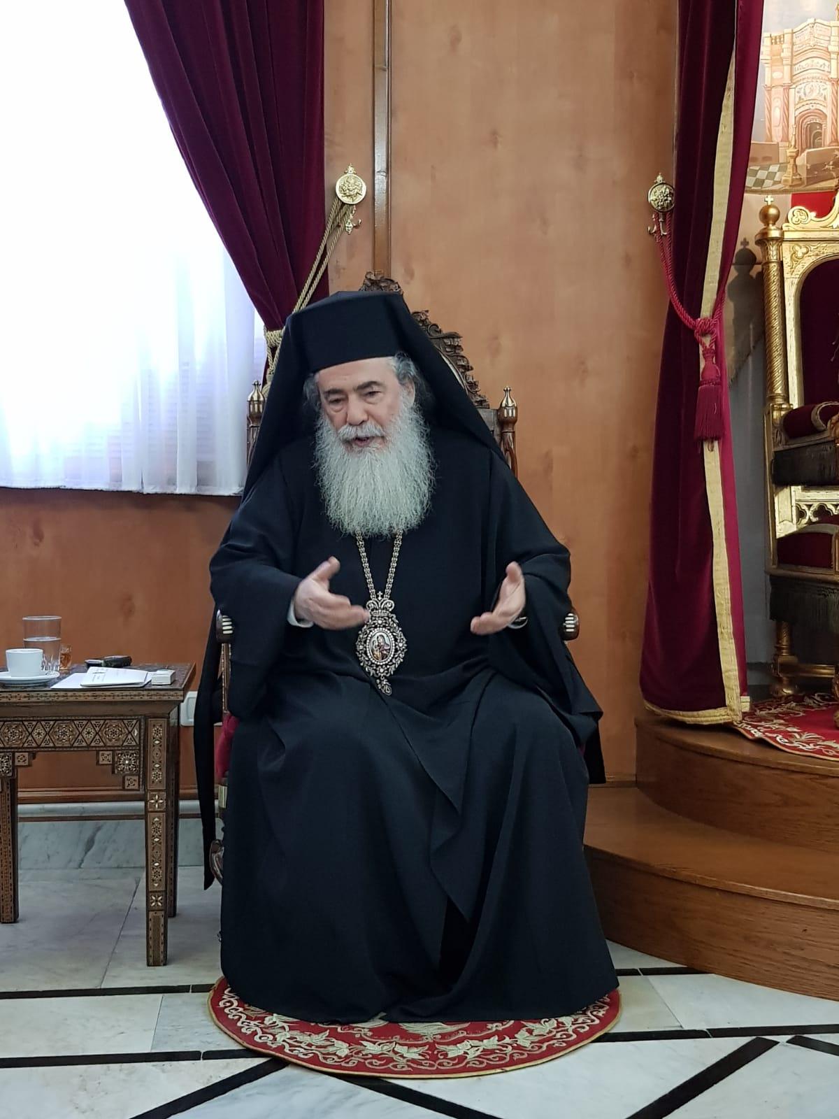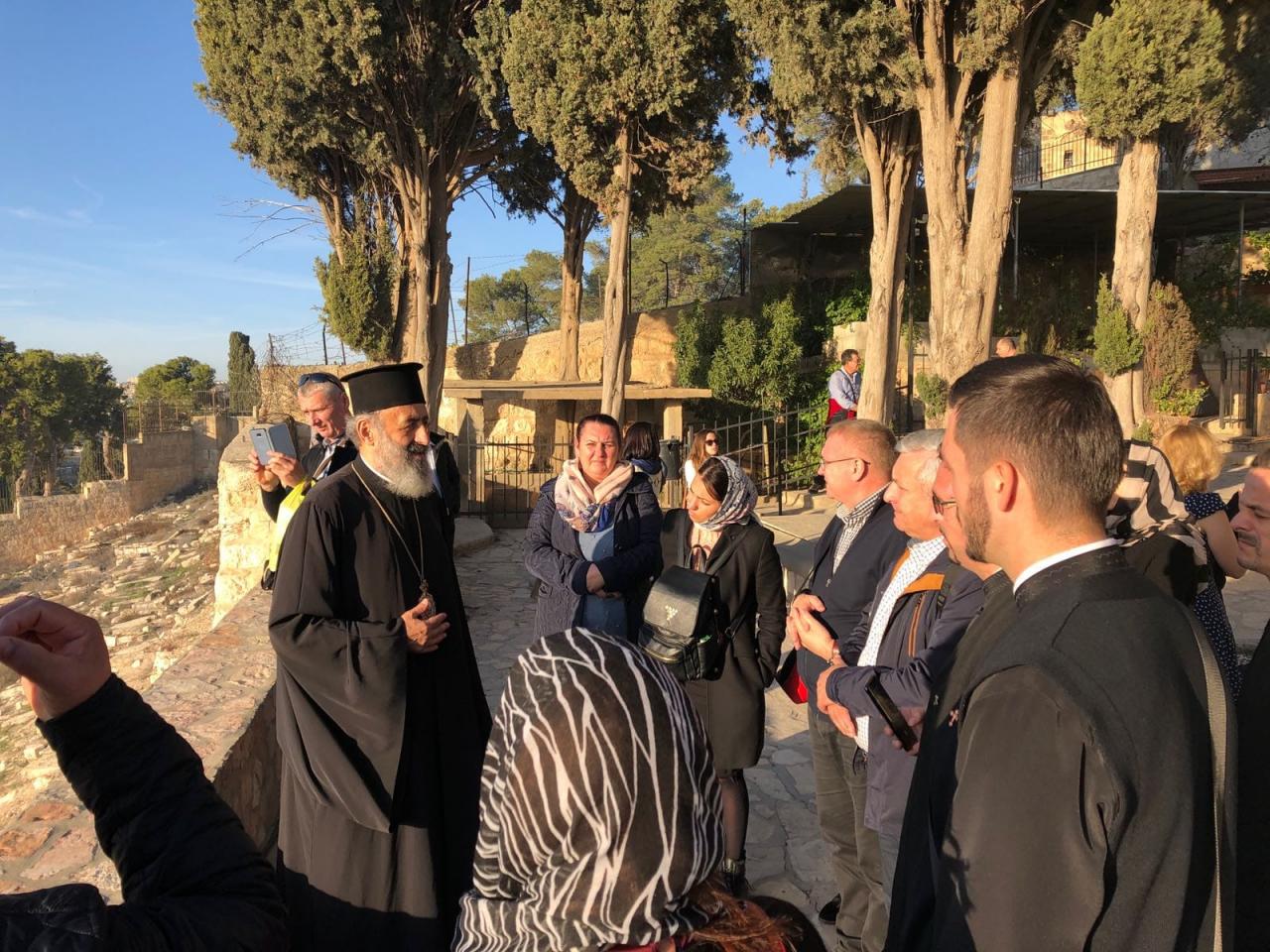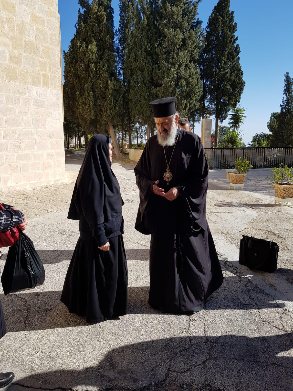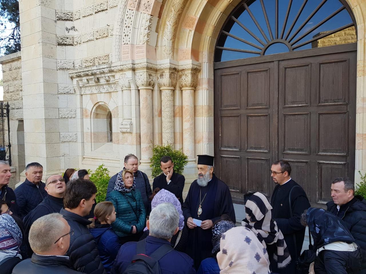 Continuând pelerinajul, Părintele Arhiepiscop Irineu, însoțit de grupul de pelerini, a vizitat Reședința Patriarhală de la Ierusalim, unde a fost întâmpinat cu multă bucurie și dragoste frățească în Hristos-Domnul de către Preafericitul Părinte Teofil al III-lea, Patriarhul Ierusalimului și a toată Palestina. Cu acest prilej, Întâistătătorul Bisericii Ortodoxe din Țara Sfântă le-a adresat credincioșilor pelerini un bogat cuvânt de învățătură în care a subliniat importanța pelerinajului efectuat, pe parcursul acestor zile, la Locurile Sfinte. În continuare, credincioșii pelerini, alături de Arhipăstorul nostru, au urcat pe Muntele Eleonului (Măslinilor), unde au poposit la Mănăstirea rusească „Înălțarea Domnului”, edificată pe locul unde Maica Domnului, dimpreună cu Sfinții Apostoli, L-a privit pe Mântuitorul Hristos înălțându-Se la cer.